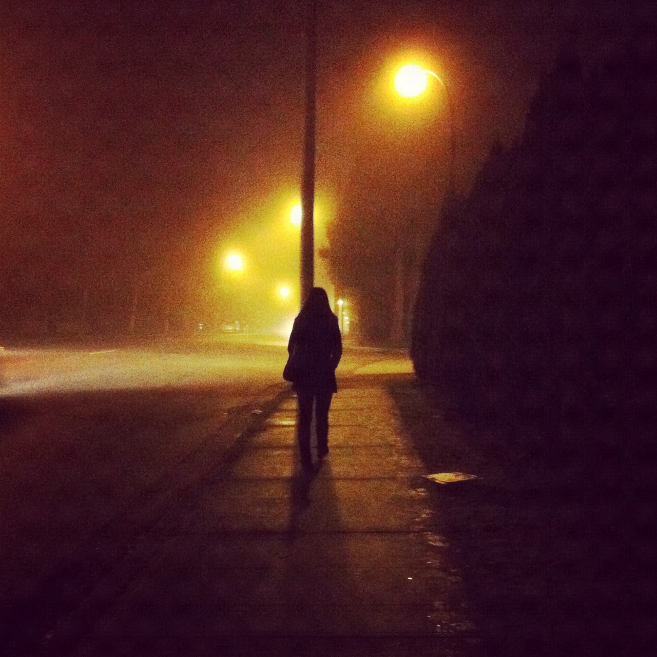 Your first picture with the girl walking down the road with the intersection: I love how you captured the outlandish feeling the fog creates.