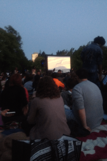 The great thing about these movies is that they wait for the sun to set before they play it– or else no one would really be able to see the movie, which was projected onto a huge inflatable screen. So you get total silence from this crowd of several hundred, sitting under the stars on a cool summer night, all enjoying as the movie unraveled itself. It was a different experience.