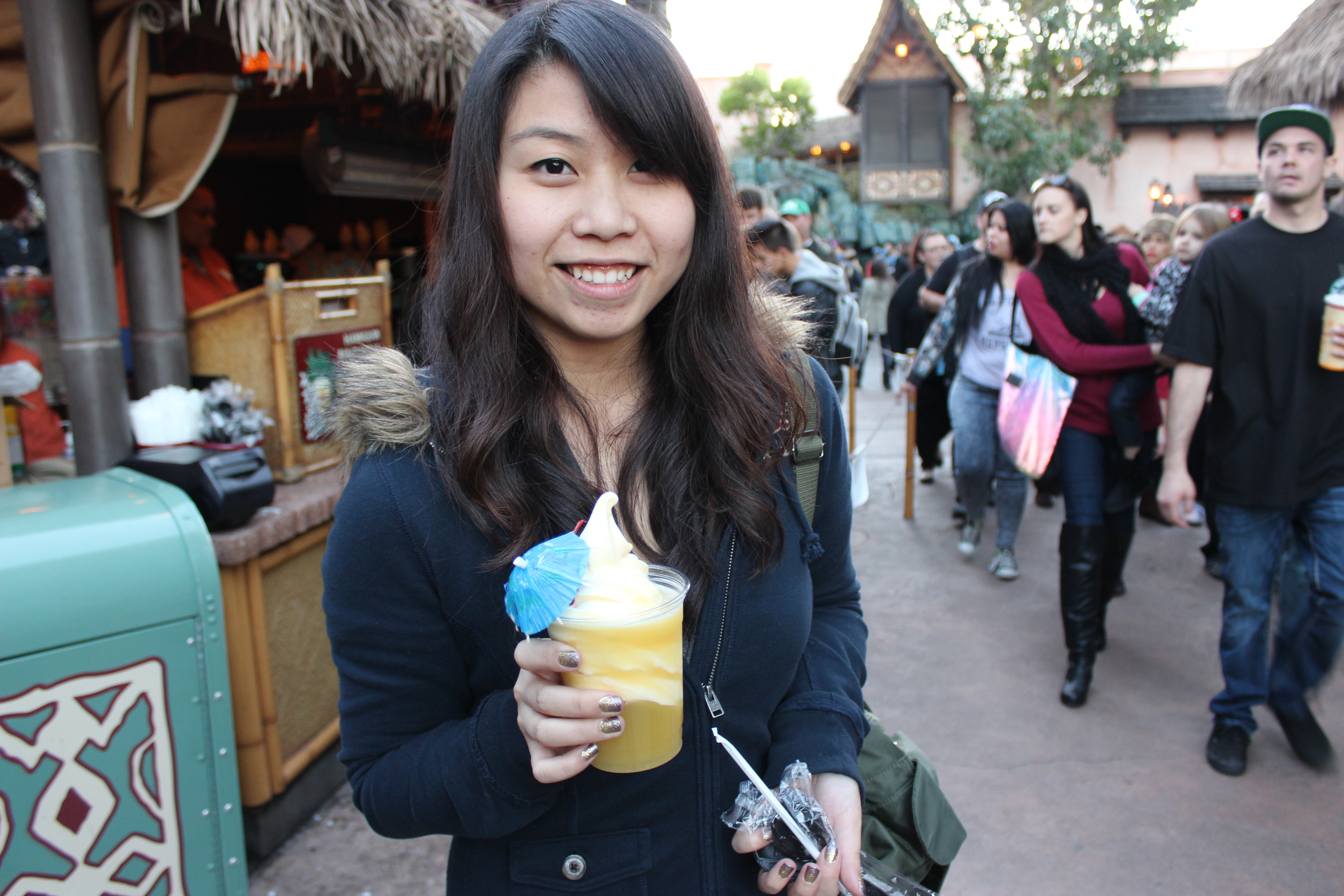 Another thing that stood out to me was Dole whip. Here’s the thing: I’ve never heard of a Dole whip. I saw it on instagram, then realized that there were a million pictures of the little mountain of pineapple flavoured soft-serve ice cream. What the heck was this and why is it so popular? I was very hesitant to get it, mostly because it was cold at Disneyland and there was a lineup. There was a lineup for soft serve. I had enough of lineups. But nonetheless, we waited about 30 minutes in line and got our Dole Whipe Float. It tastes much like pineapple flavoured soft serve, except there are little chunks of pineapple. It tasted tart, which I quite liked. It was a very good soft-serve, but I still didn’t get all the hype that surrounded it.