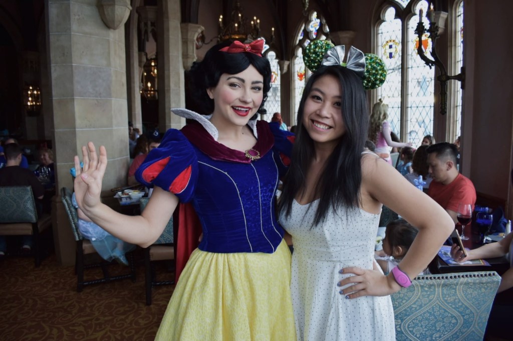 During our visits, we managed to dine at both Cinderella’s Royal Table and Be Our Guest. Cinderella’s Royal Table places you in the actual iconic castle itself for a meal where all the princesses come out while you eat. They greet you and will take pictures with you! It was pretty pricey, but I think it was worth it—dining at least once inside the castle was a dream come true.