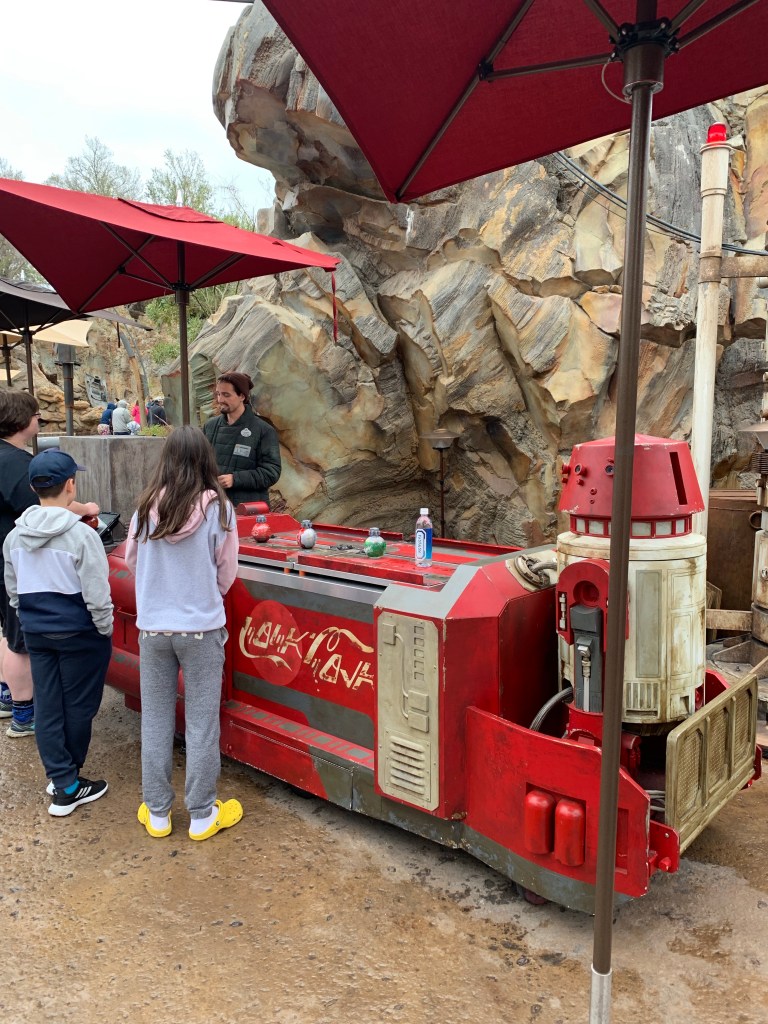 Hollywood Studios’ main draw for me was Galaxy’s Edge. And oh my goodness, it’s amazing. Themed around Star Wars, the area feels gritty, and everywhere you look, the details are so whimsical. I even bought a themed Coca-Cola: it’s just a regular disposable Coke, but the bottle is round and has Batuuese written on it!