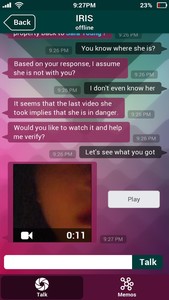IRIS soon realizes you’re not Sara, but recruits your help to figure out what might have happened to its owner. The rest of the phone’s contents has been corrupted and are not accessible, but IRIS tries to restore what it can for you.