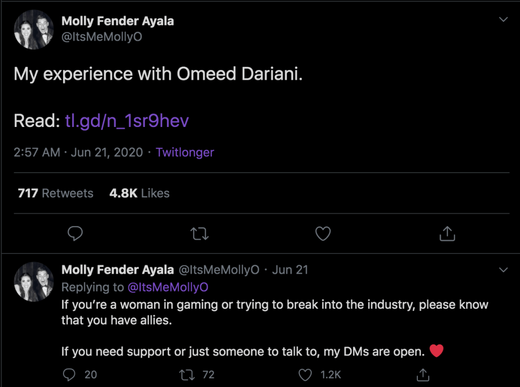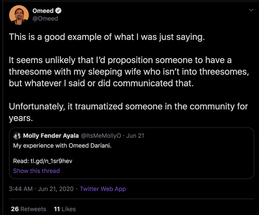Another one was @ItsMeMollyO calling out Omeed Dariani, CEO of Online Performers Group, an agency that manages online content creators.