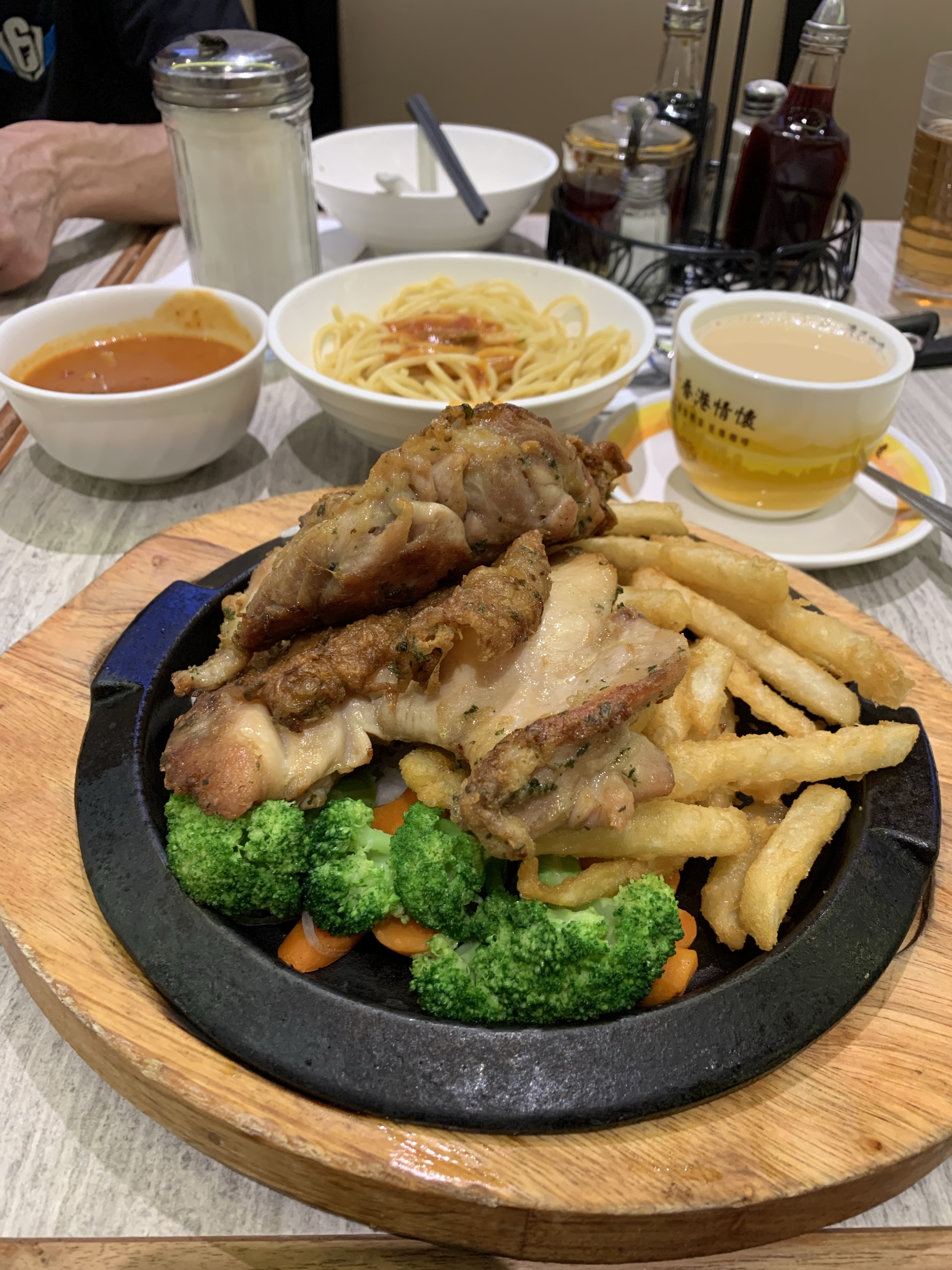 We ate at Calgary Court Restaurant, which served up pretty traditional HK cafe stuff. I highly recommend it!! The portions are huge and so good.