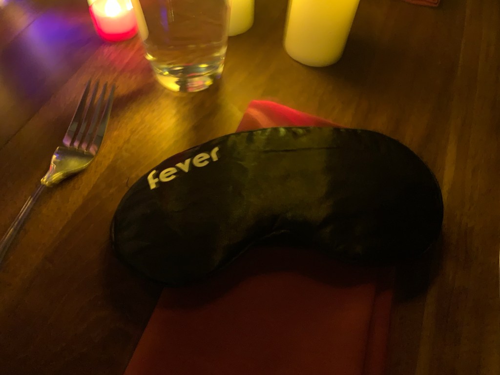 The restaurant itself was booked up for the event and everything was illuminated in a low light as we got to our table. When the event actually started, a hostess spoke into a mic and instructed us all to put on our eye masks.