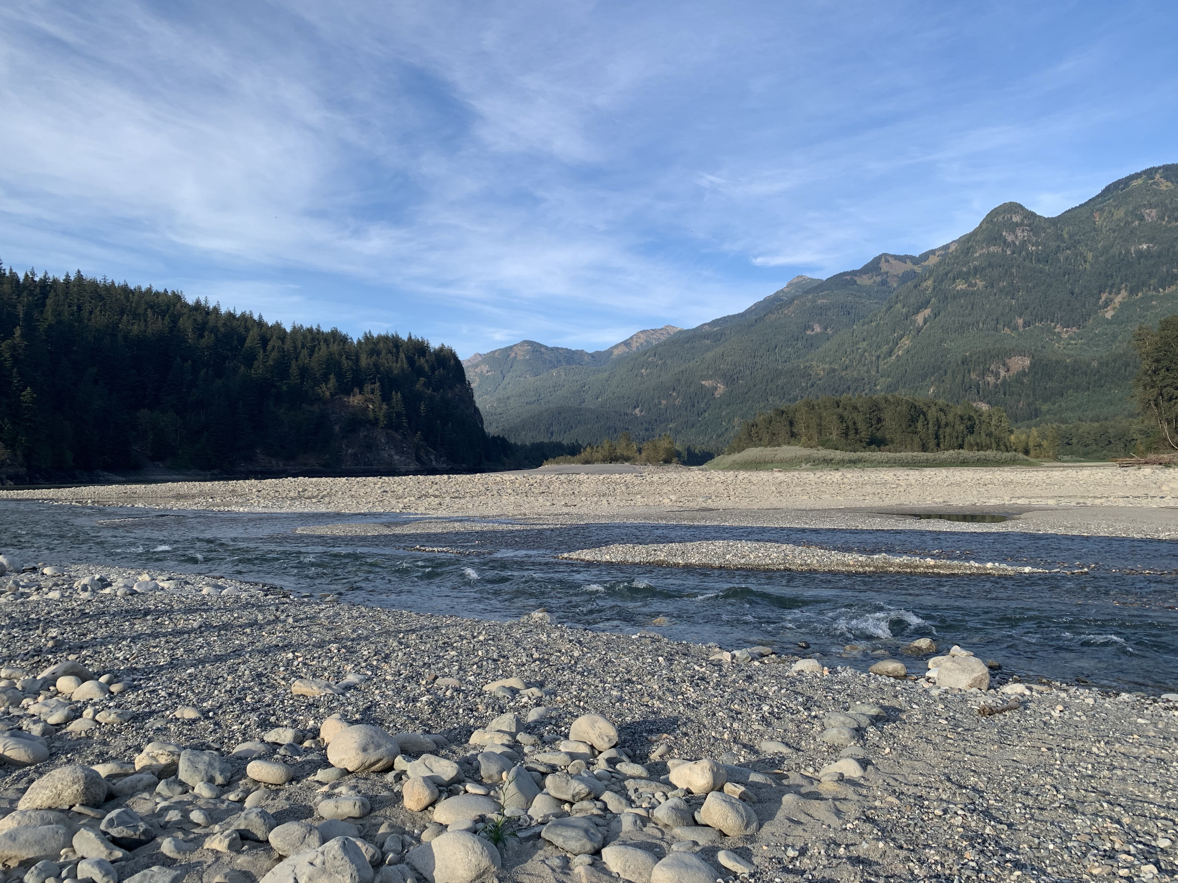 We headed to the Hope Rotary Trail which is part of the Gold Rush Trail. After we parked, we got out and saw rock fields as far as the eye can see. And of course, there was a running river along the mess of rocks.