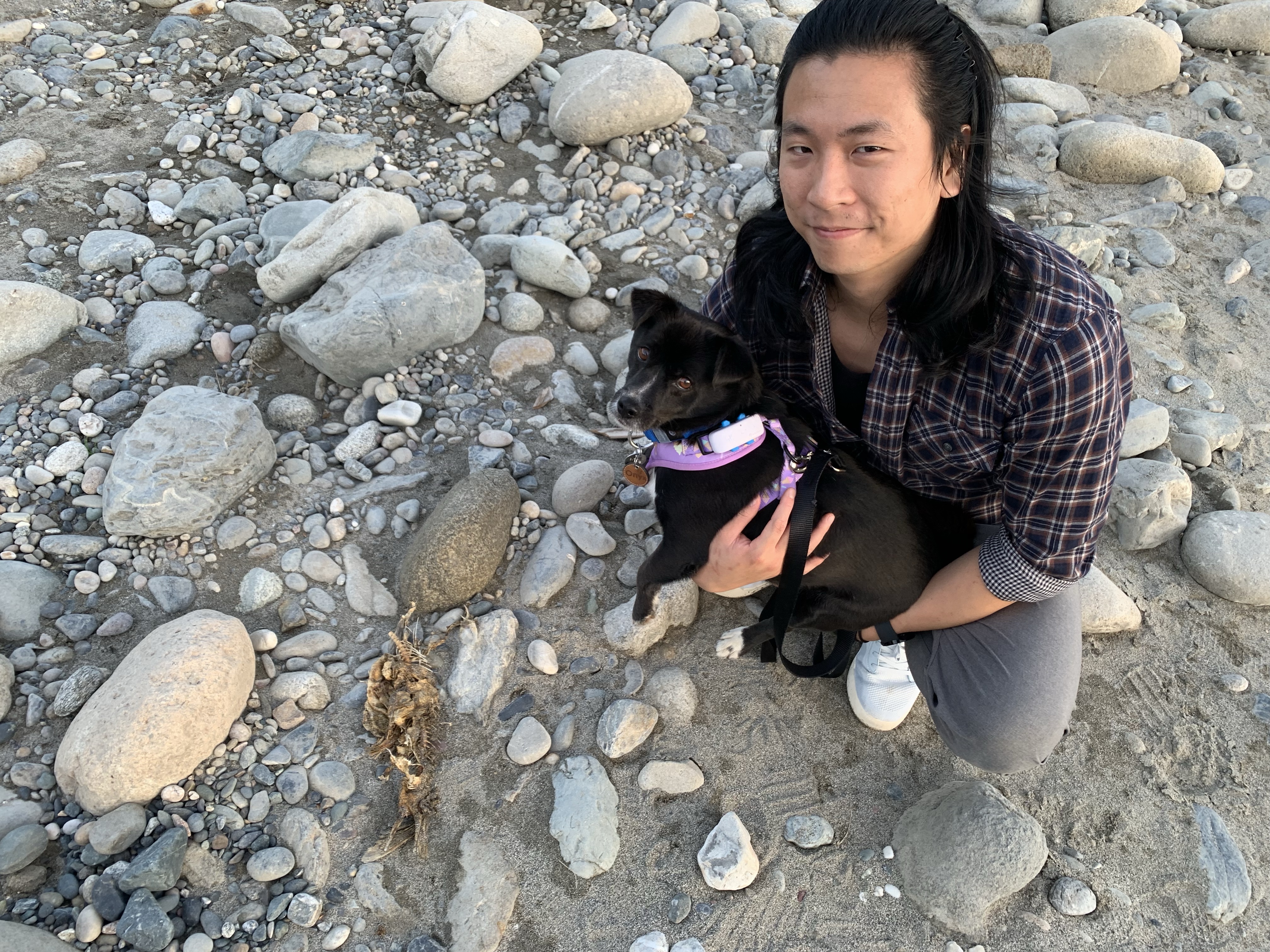 At one point, I let Onyx roam around since he was having a blast sniffing everything. Then he wandered away and I saw him from afar rolling into something on the ground. Usually, he does that when he finds a good smell. I walked towards him and saw him proudly pick up the “thing” he was rolling it. When I got closer, I smelled a pungent smell and realized he had a rotting dead fish in his mouth. I screamed at my fiancé to come and help and made Onyx drop the fish. My fiancé ran over and picked him up, but Onyx definitely had rotten fish chunks in his fur and collar by then :’ ) He was pretty stinky for a bit until we cleaned him off with wet wipes and river water. After that, he was kept on a short leash.