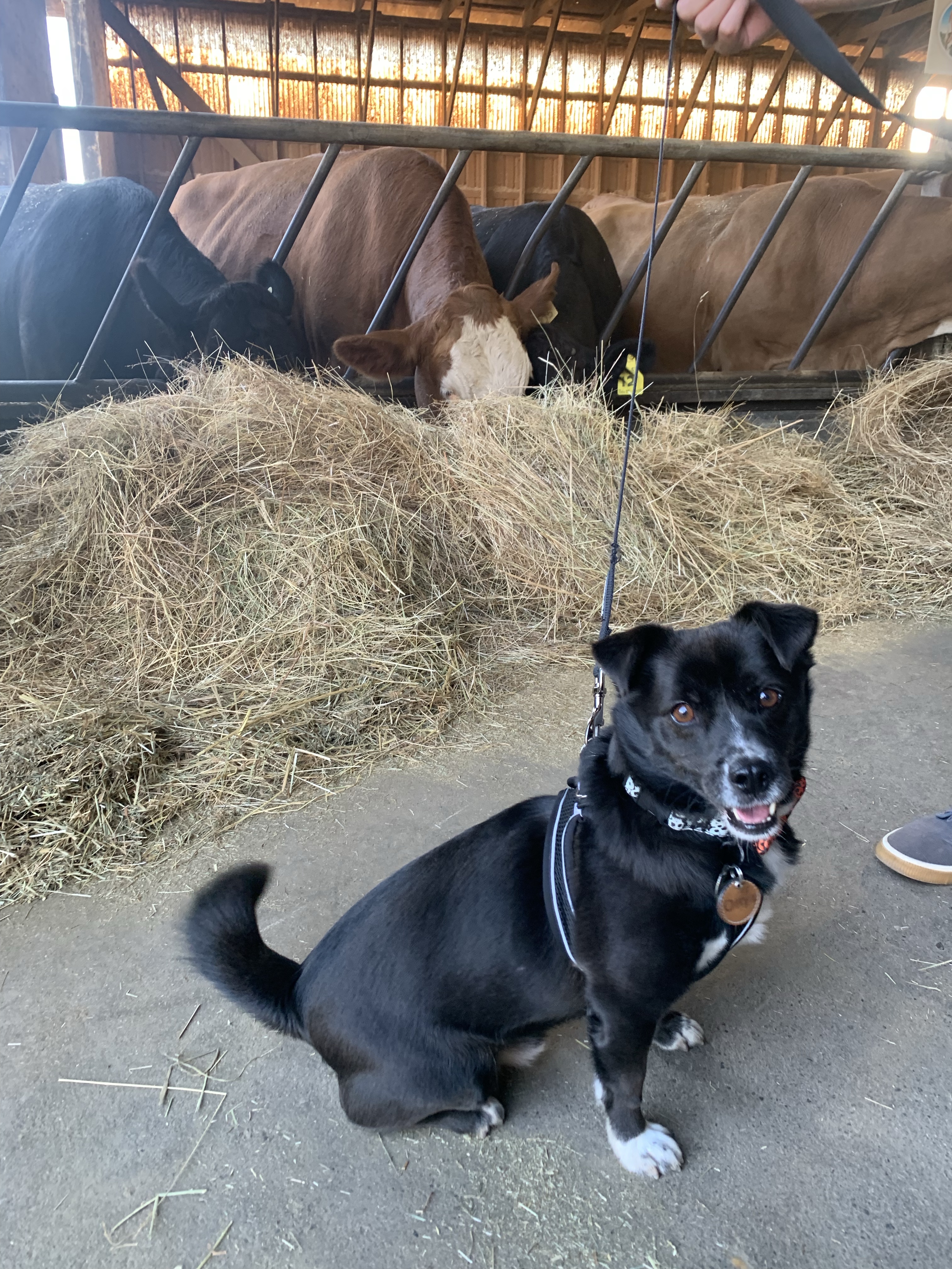 Onyx initially seemed apprehensive about the hay ride, but because my fiancé and I sat on both sides of him, he started to have a good time! When we got to the pumpkin patch, Onyx happily roamed the dusty grounds. He also started doing this thing where he licked the pumpkins?! The once dusty pumpkins would then have “clean” patches because he’d randomly lick at them. So strange.