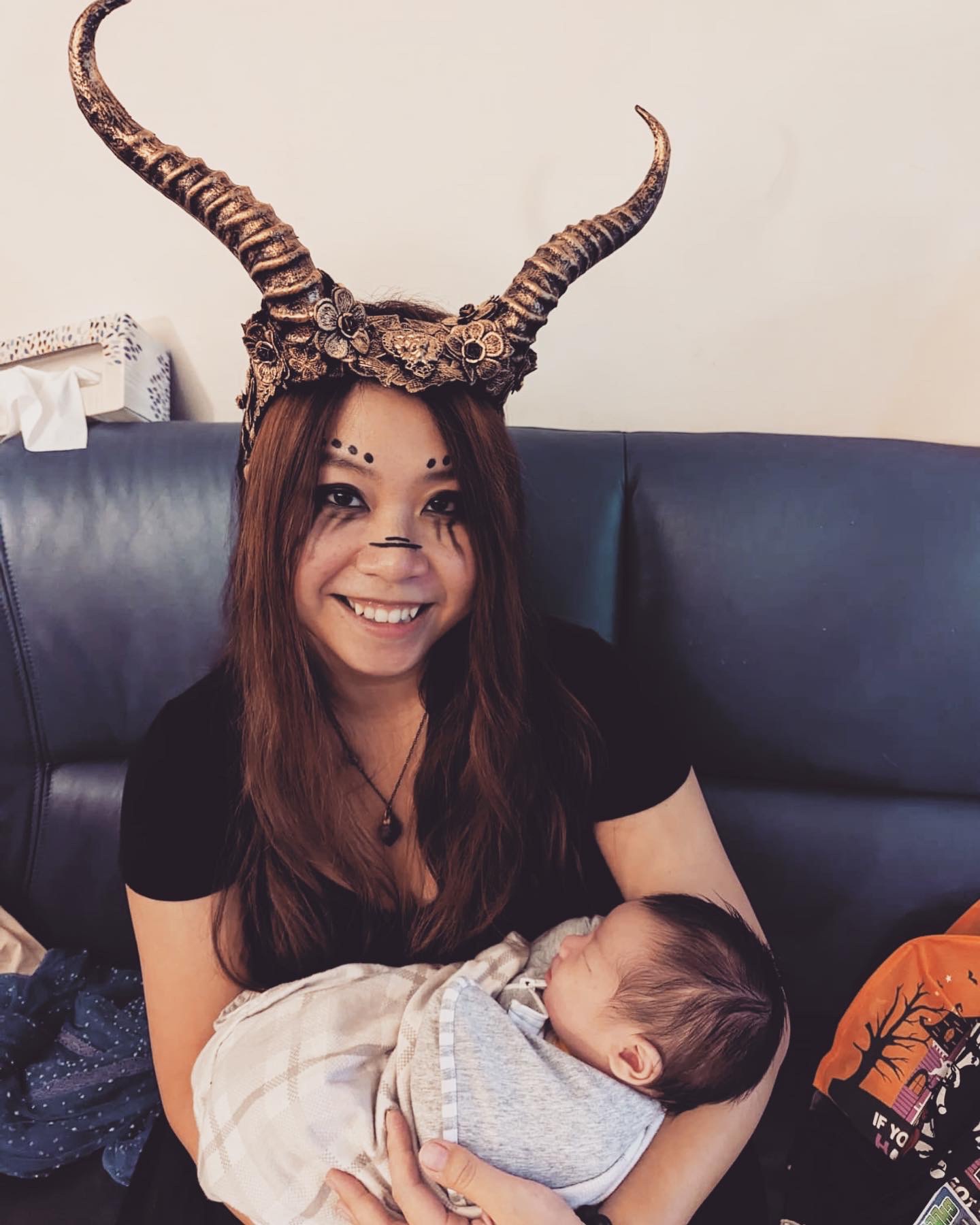 My cousin’s wife actually just gave birth about 2 weeks prior so this was the first time I met and saw him! Unfortunately, I was dressed up as a witch that Halloween day, so my first ever picture with him looks… a little strange.
