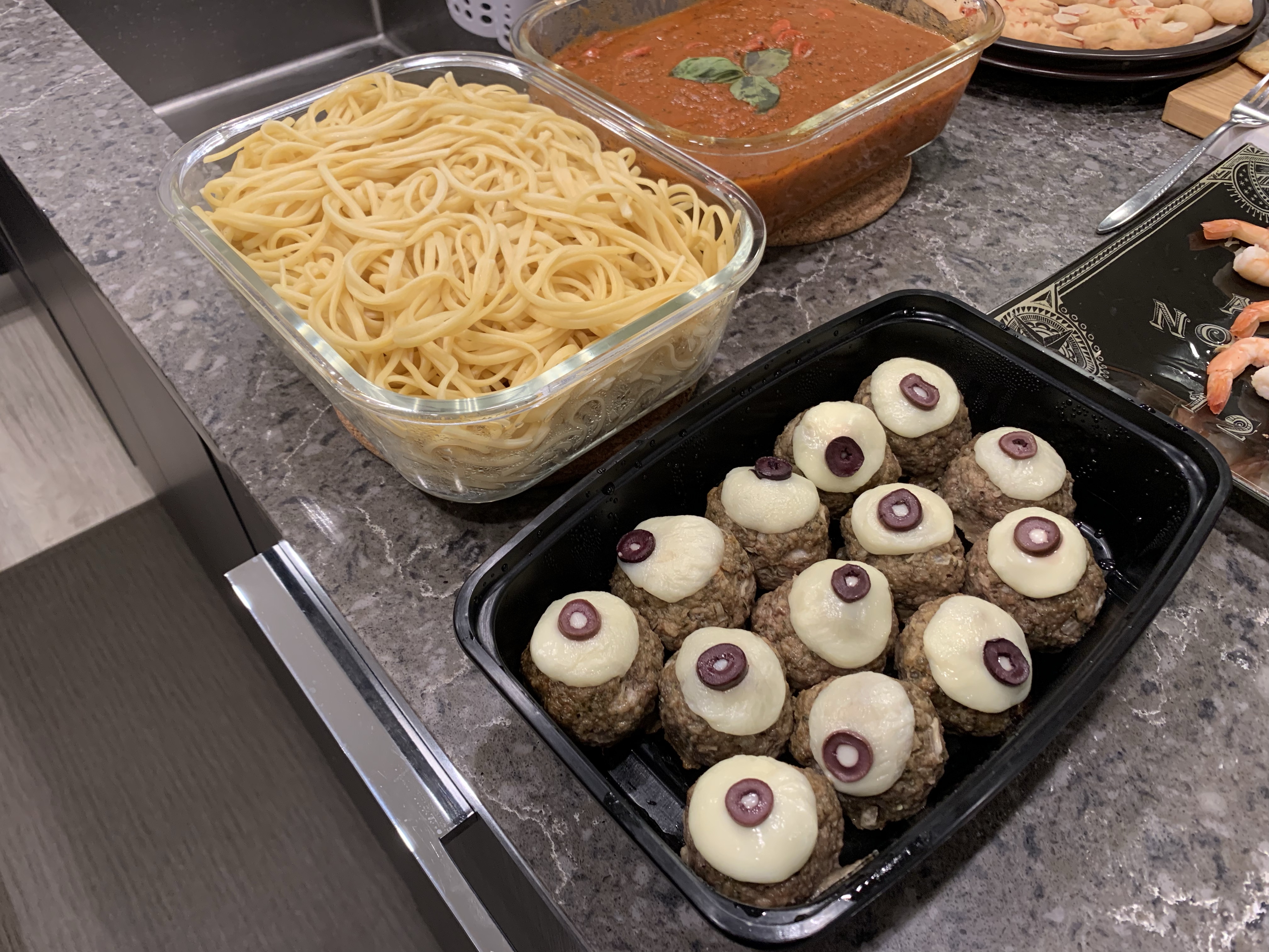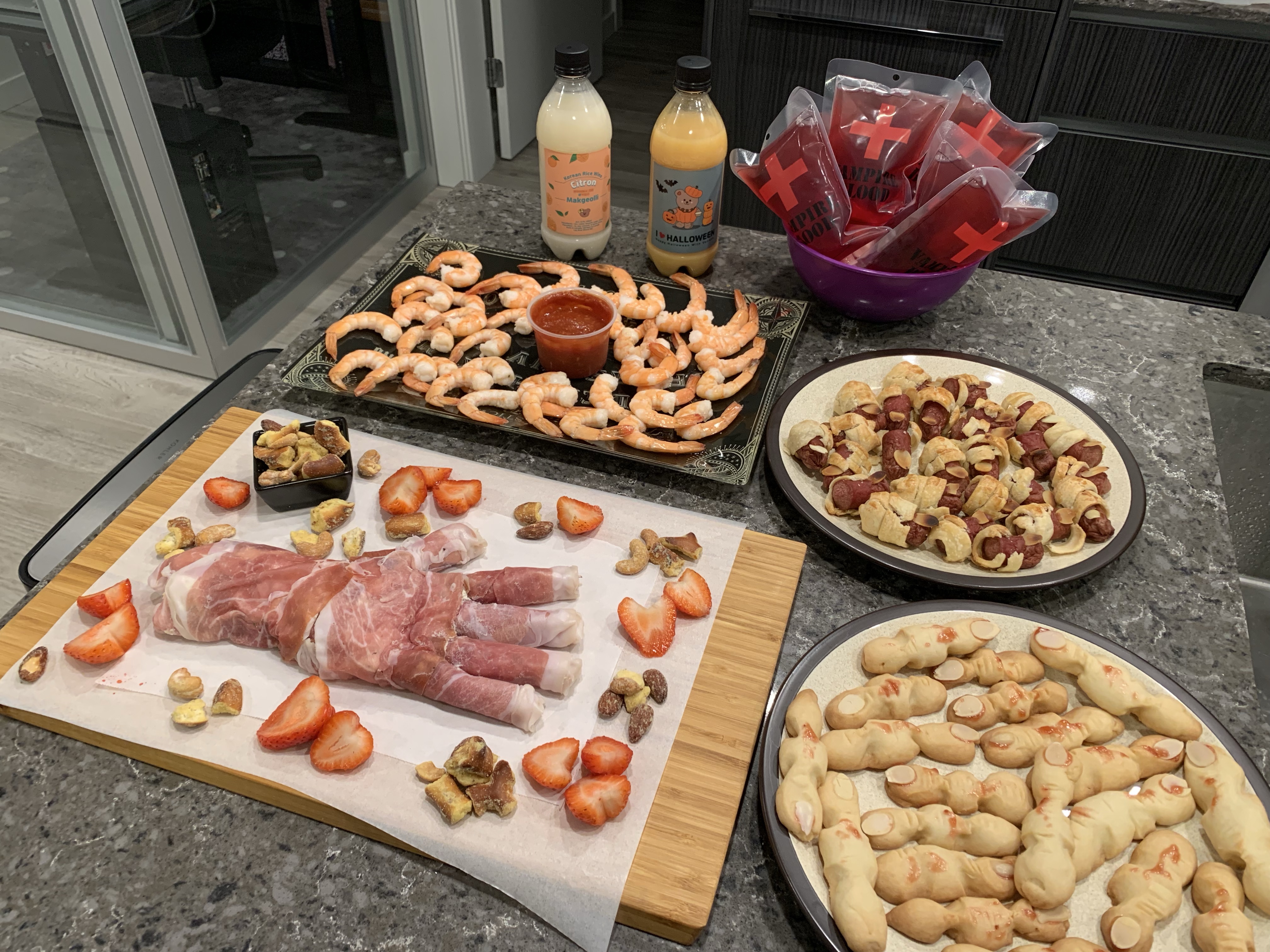 The charcuterie board we made was so gross I didn’t really want to eat it. We also made little Oreo truffle bites that tasted like Oreo cheesecake balls and blood bags filled with Cranberry cocktail.