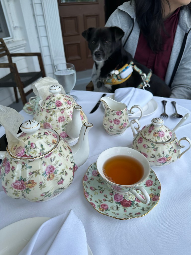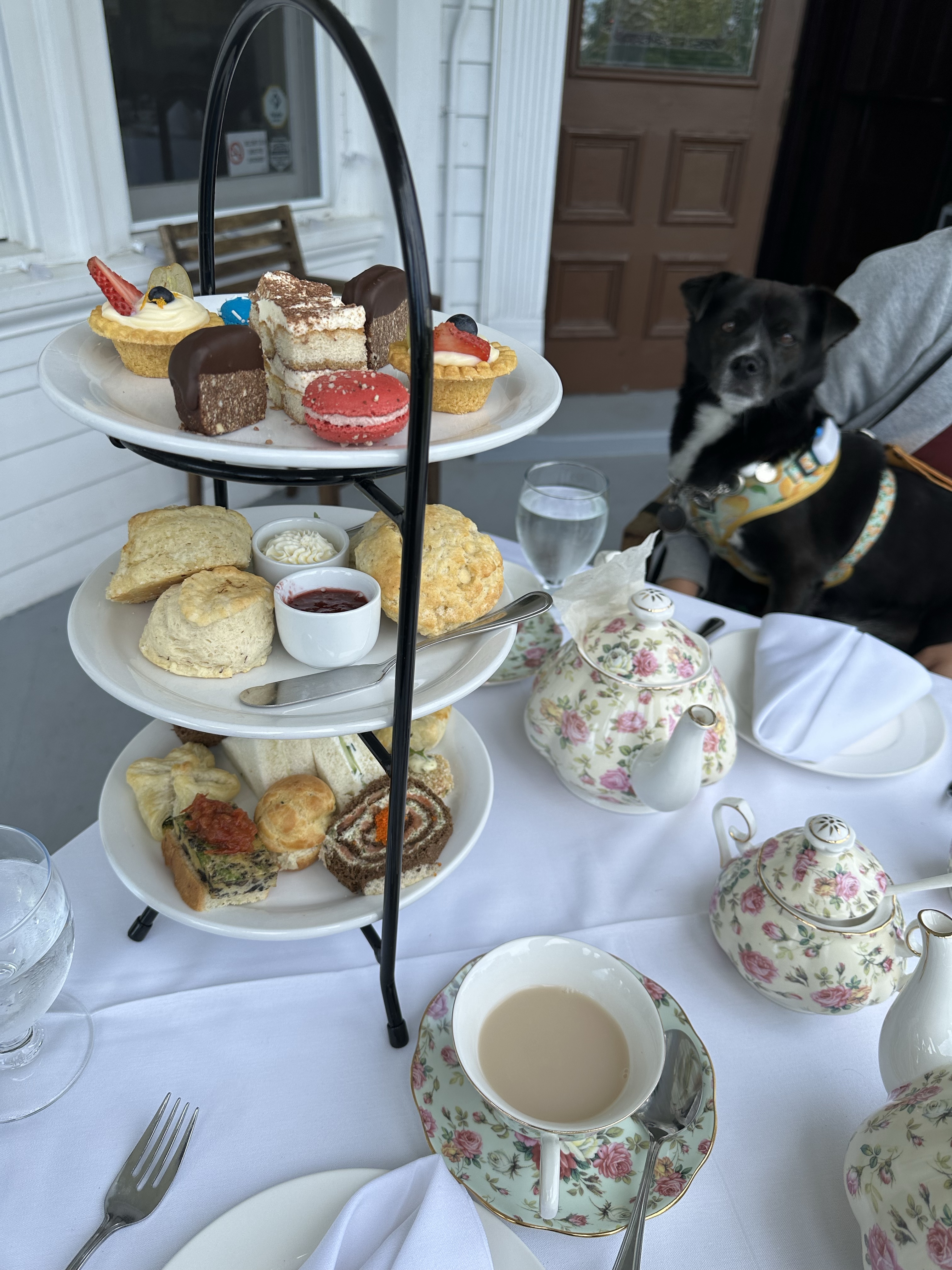 The next day saw us checking out of the hotel and heading over to the Pendray Inn and Tea House. We had an afternoon tea booked here and their patio allowed us to bring Onyx along! Having tea while looking out towards the water and the lovely garden was refreshing. I also loved the Cream of Earl tea that my fiancé ordered! I ordered the chai tea, but was pretty disappointed. I should’ve known better than to order teabag chai.
