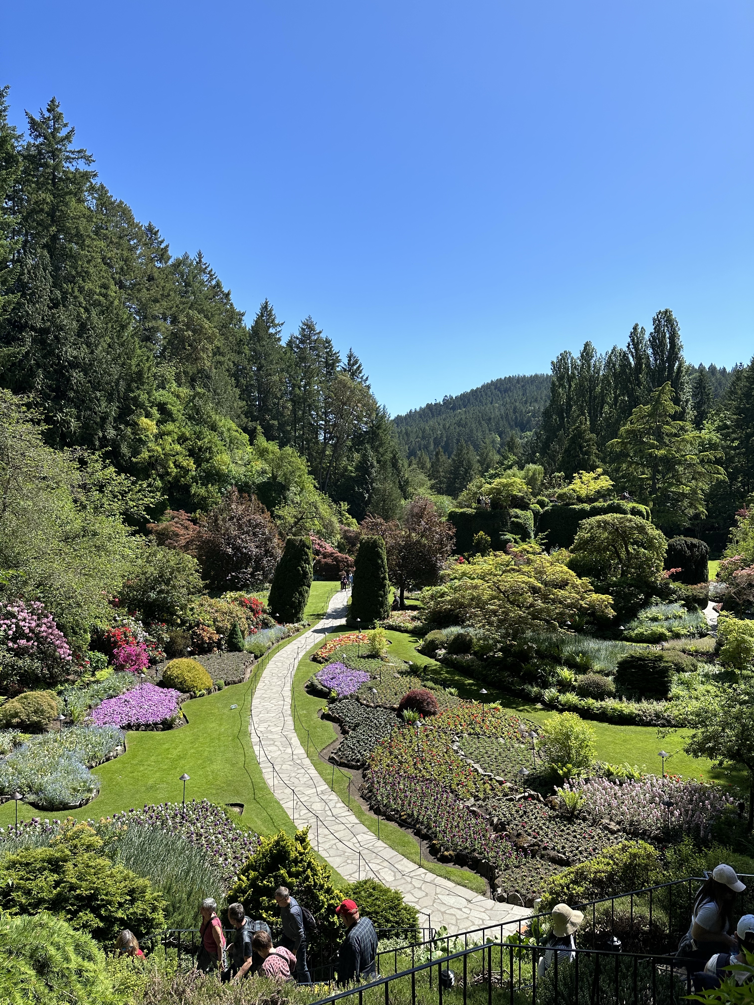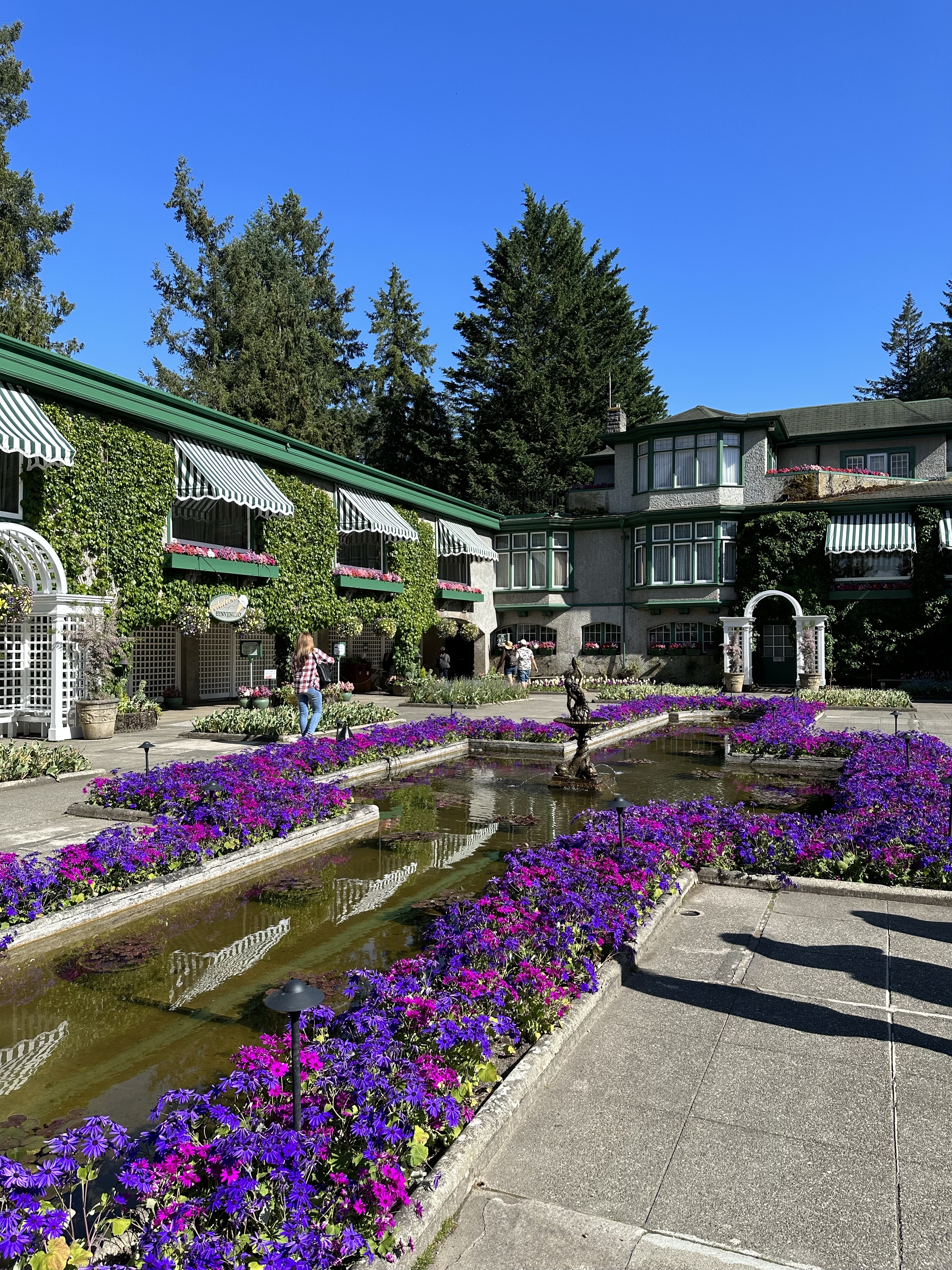 We left Victoria after tea and drove to Butchart Gardens! I don’t know if I’ve ever been—perhaps when I was a toddler with my parents? But either way, it felt like my first time. They are dog friendly so Onyx got to enjoy the gardens too! We put him in his stroller since he can get reactive around other dogs. Which led us to realize that Butchart Gardens is quite wheelchair/stroller accessible! They always have an alternate ramp access route to see the different attractions! A great thing to keep in mind.