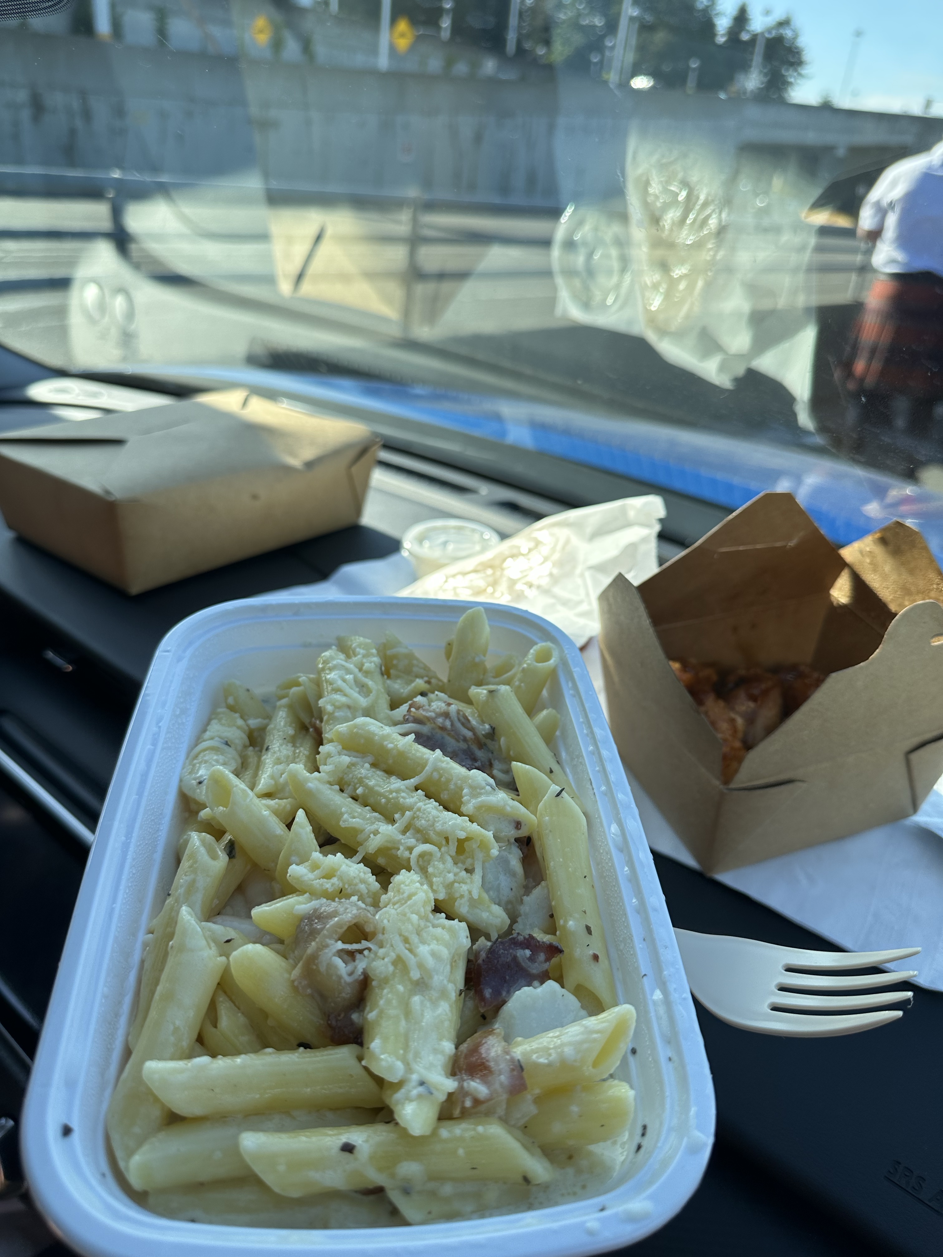 We left Butchart at around 5:15PM, as we wanted to pick up some food before we headed to the ferry terminal. We drove to Mary’s Bleue Moon Cafe and got a hearty takeout dinner of seafood quesadilla, scallops & bacon penne, and wings. Their café has a lot of cute aviation-themed décor and then we realized they were located across from various aviation fields and hangars. The food was delicious and we ate as we waited to board the ferry in our car. Once we were boarded, I once again drifted off to sleep. Something about the waves and the white noise of the ferry knocks me out immediately I guess.