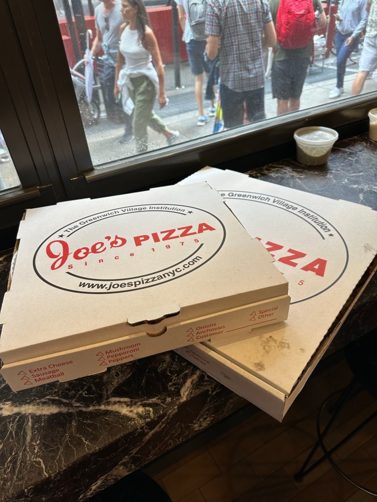 Before heading back to my sister’s, we grabbed some pizza from Joe’s Pizza so we could all have one last lunch together. I had a mishap here where I bought way too much pizza. To the point where the cashier asked me “Mama, are you sure?” But I paid for it and was too pressured by the growing line behind me. We ended up eating a fair amount of the pizza at my sister’s! And they froze the leftovers.