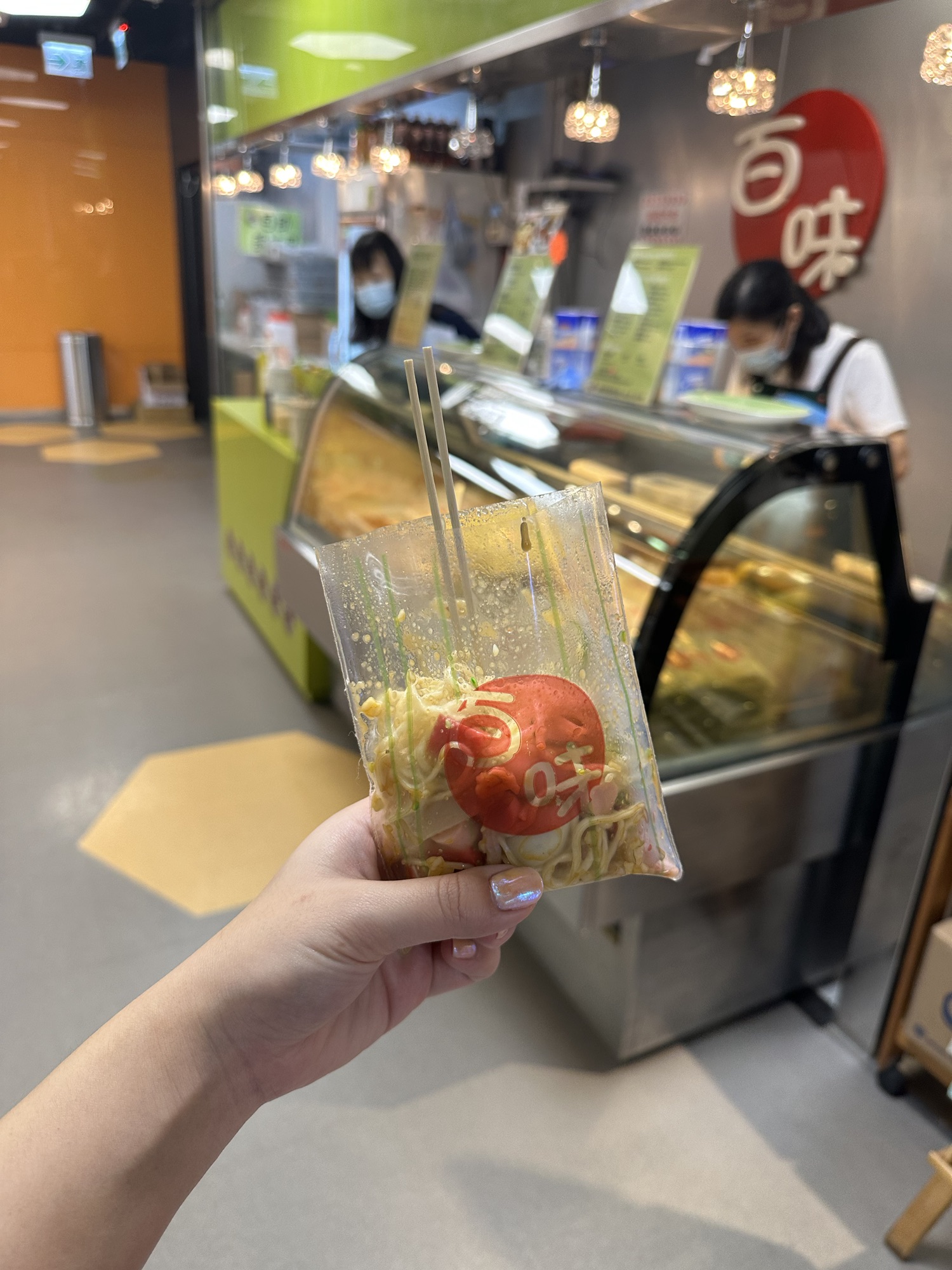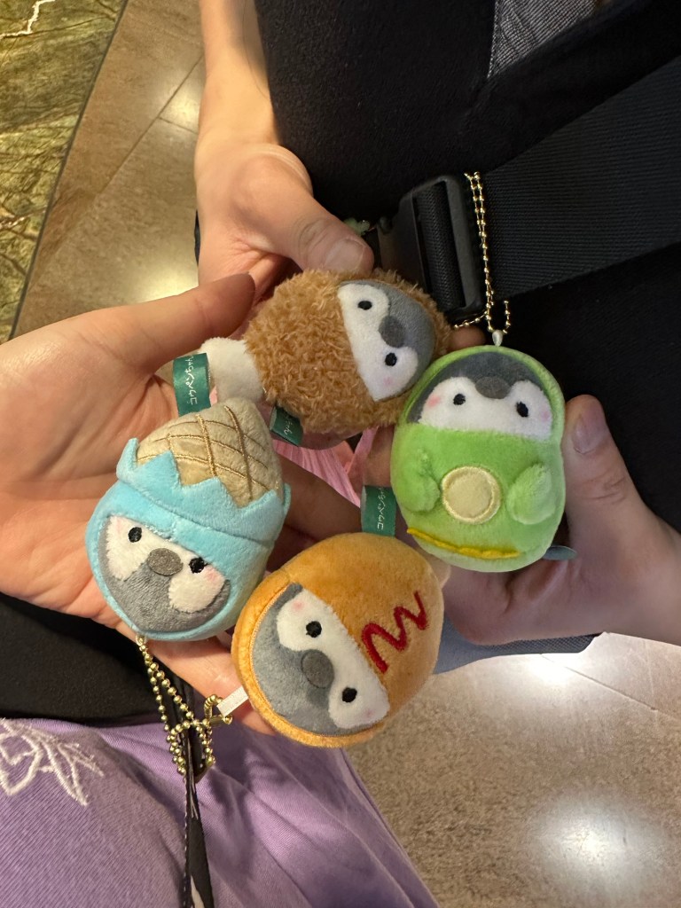 Seb was really good at this one crane machine and we ended up getting a bunch of little penguins. I immediately put them on my bag. I also got a “bagged noodles” — these were such nostalgic snacks in my childhood. You can choose from a variety of ingredients and they’d mix it in a bag with a yummy homemade sauce for you.