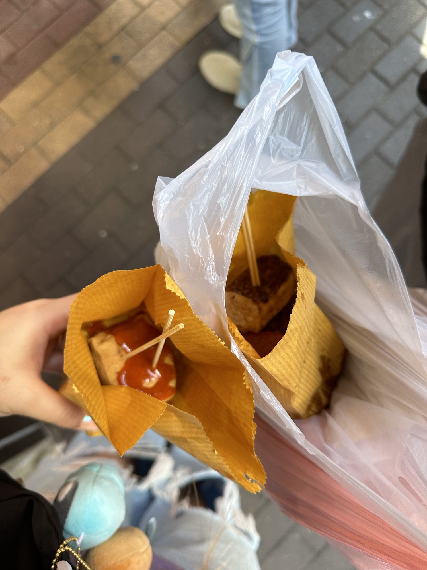 We then got some street snacks (I love the salty quail eggs they cook on the streets) and my favorite of all was finally getting to eat the stinky tofu they sell in MK again. It’s unlike the Taiwanese stinky tofu, where it’s very porous and light. This is substantial and the savoury flavours are unparalleled.