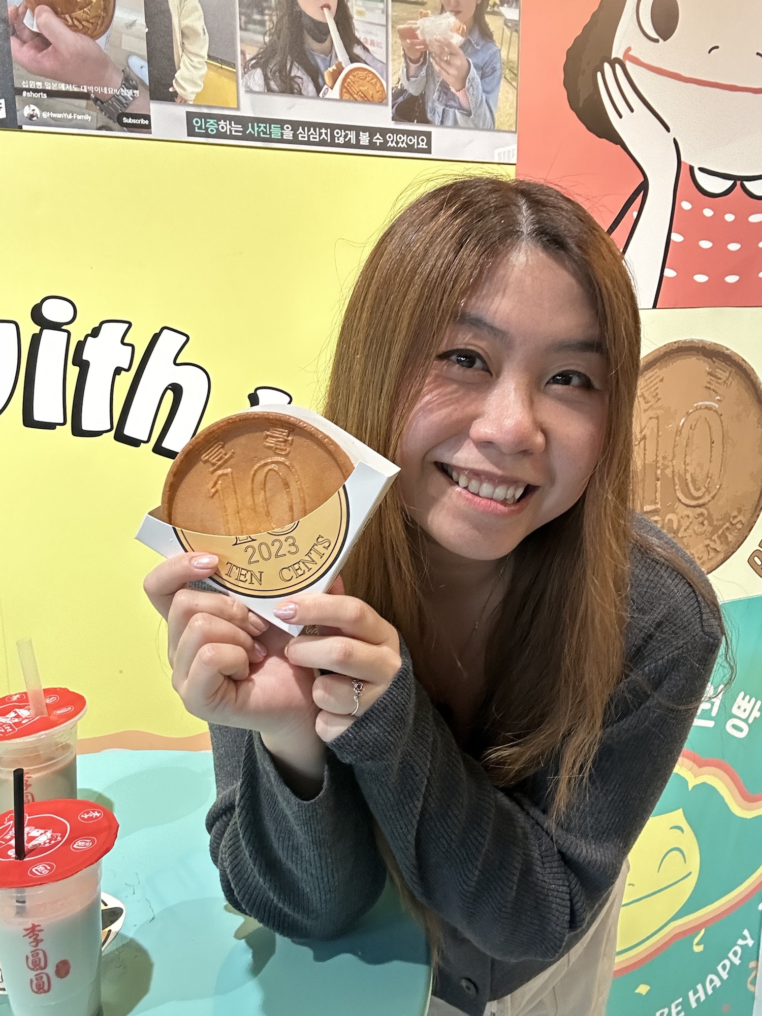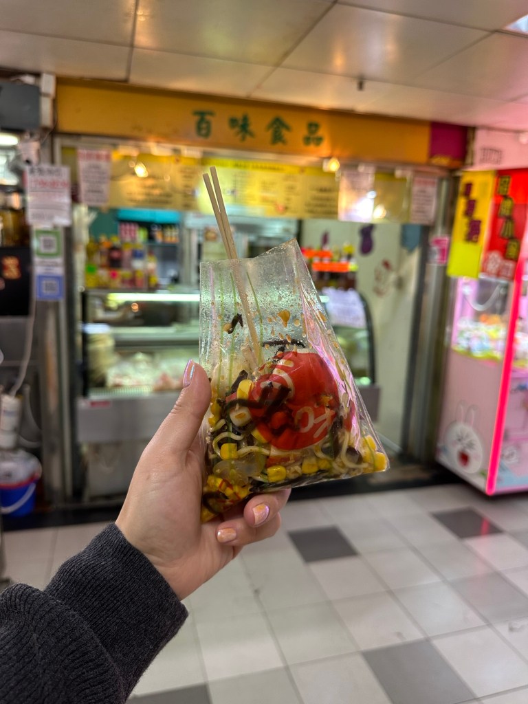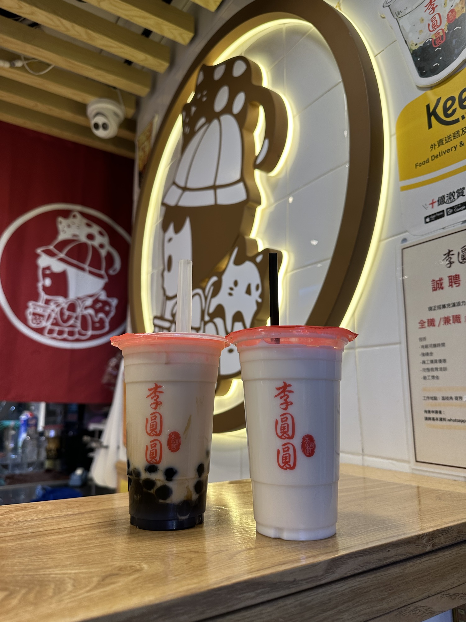 This mall is home to a bunch of food stalls. We ate our breakfast at Yoshinoya, and then I got another bagged noodles. I also got this “10 cent” waffle (it was like $30 HKD, but it was shaped like a 10 cent) that was stuffed with cheese that allowed me to do a really good cheese pull. We got some drinks from a bubble tea place, and given my limited ability to read Chinese, I asked the fiancé what he wanted. I ordered myself ginger milk, and he somehow got me to order the drink with the longest name with a lot of characters I didn’t know how to pronounce. Thanks.