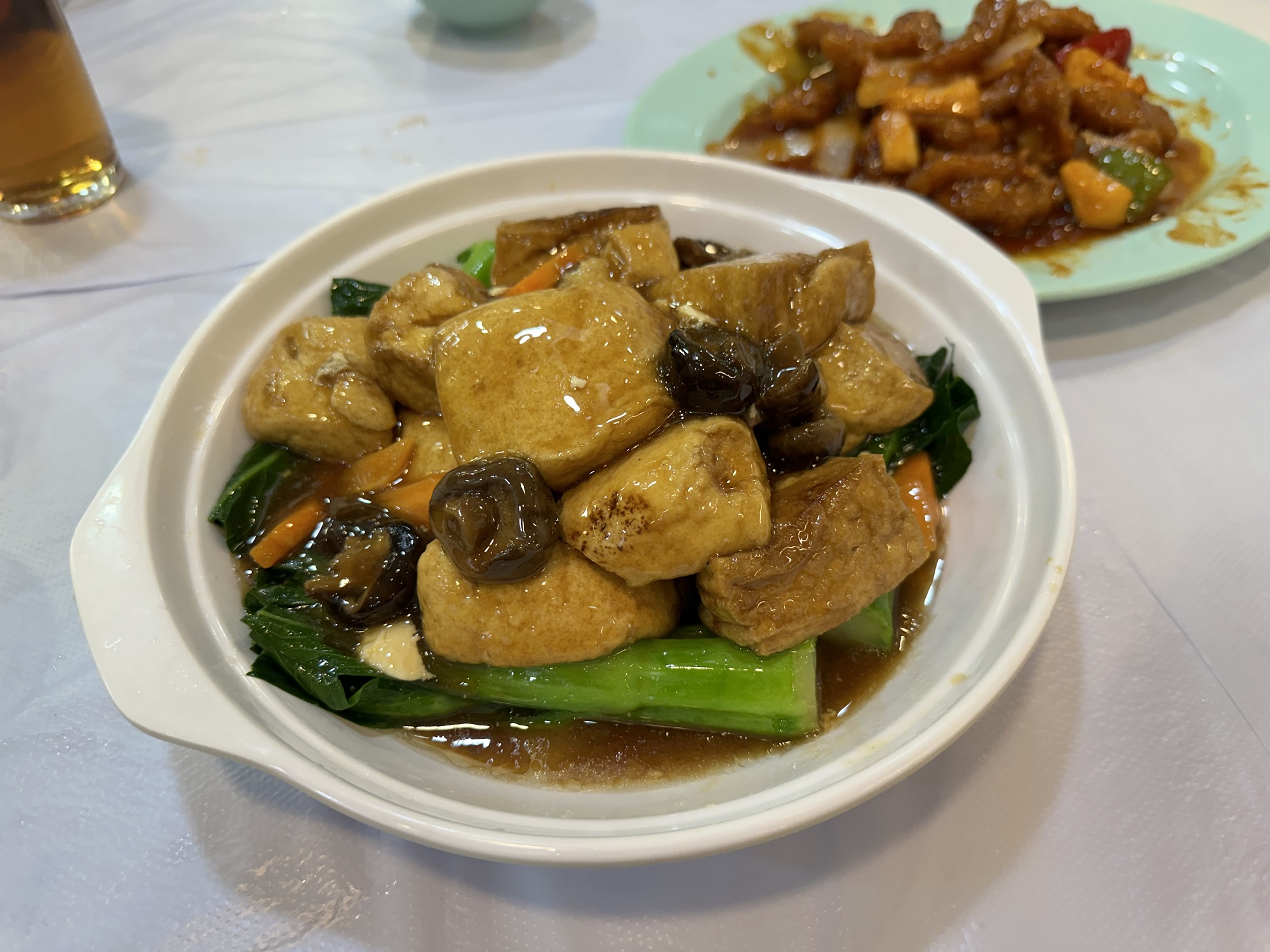 We also had dinner at a Chiu Chow stir fry place called 潮味苑 (Chiu Mei Yuen – Shop A, G/F, Asian Building, 254-258 Cheung Sha Wan Road, Sham Shui Po) on another day where we got their signature duck platter and I finally got my fishball soup noodles. We also got an oyster pancake! I love Asian oyster pancakes.