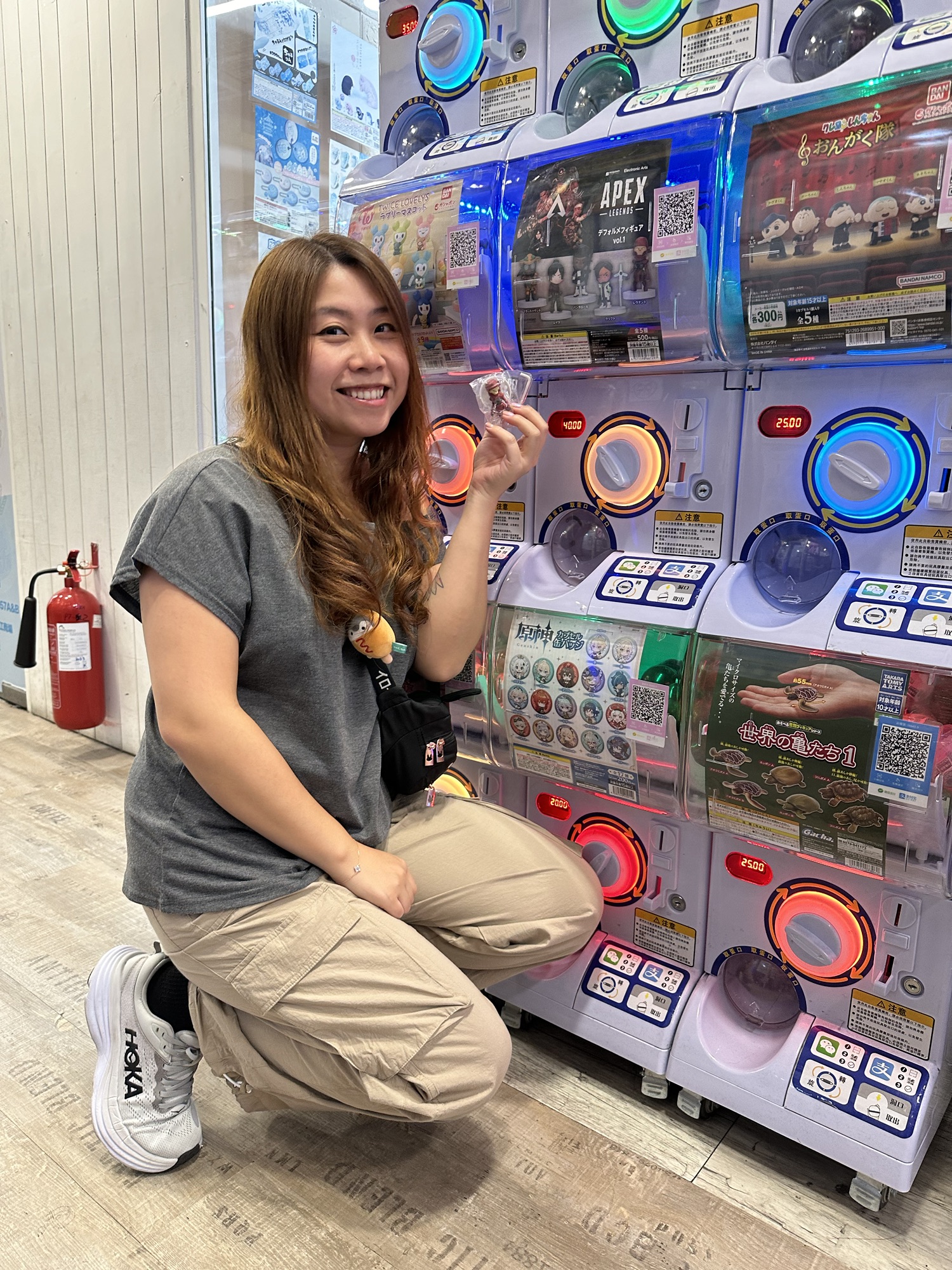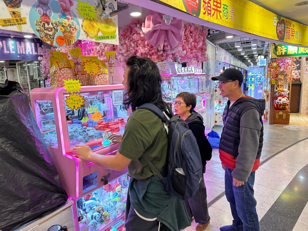 Dragon Center is so cool. It’s an older mall now, but it has everything. And that includes an ice skating rink and a roller coaster (no longer operating, but still stands proudly on the top floor of the mall). I love the floors that have tiny little shops they’ve designated as part of their “Apple Mall” areas. These stores sell everything! Again, we saw lots of unmanned gacha stalls, as well as crane machines. I also forced my mom and dad to take some photo booth photos with me. It was super cramped with 4 people!