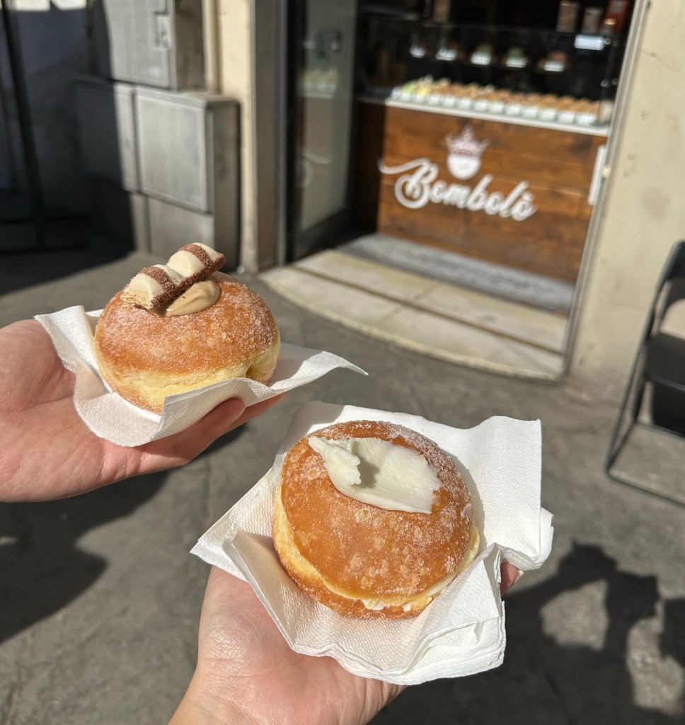 We also waited till a well-known bomboloni place opened their doors and got 2 fresh bombolonis. They were delightfully light! We got a Kinder bueno one and a ricotta one. I loved the ricotta one more! But highly recommend overall going to Bombolo in Pisa for a sweet treat!