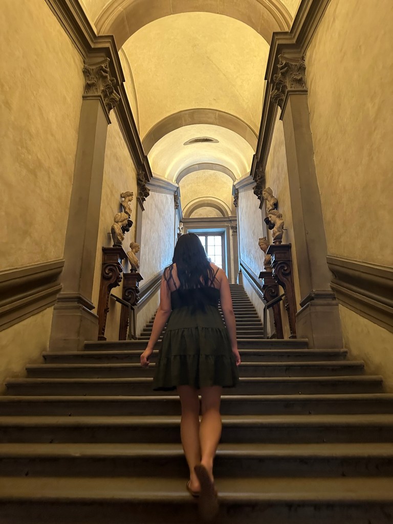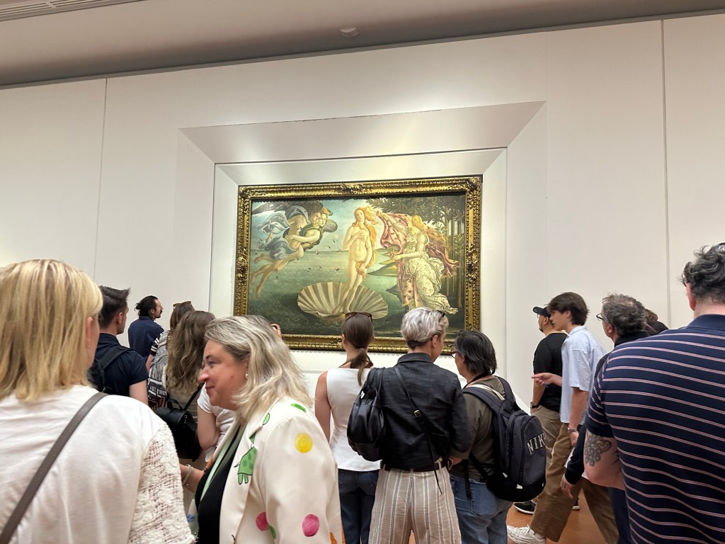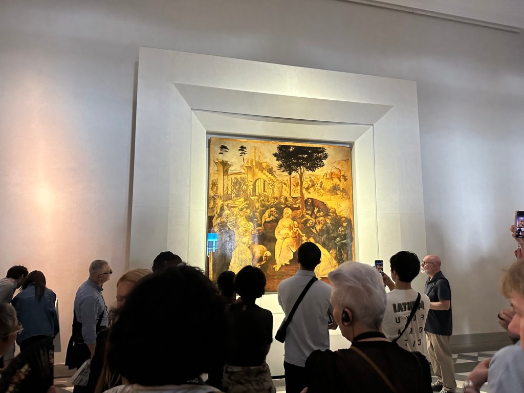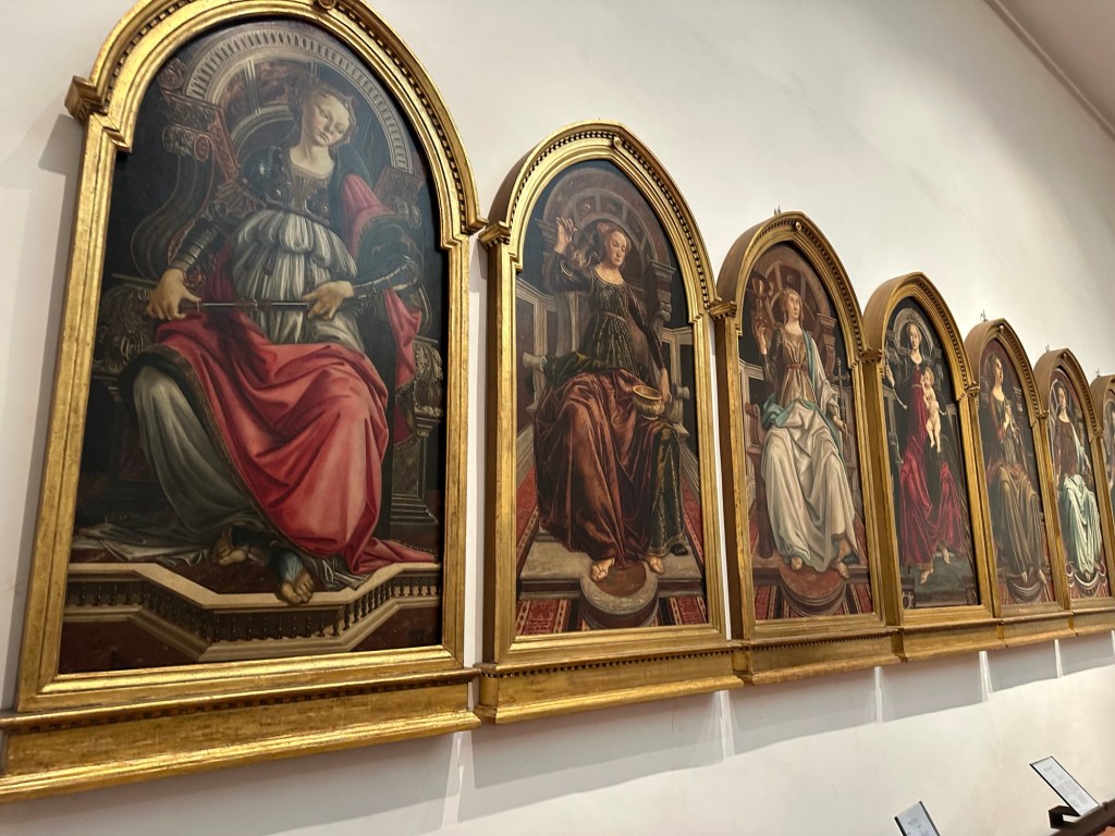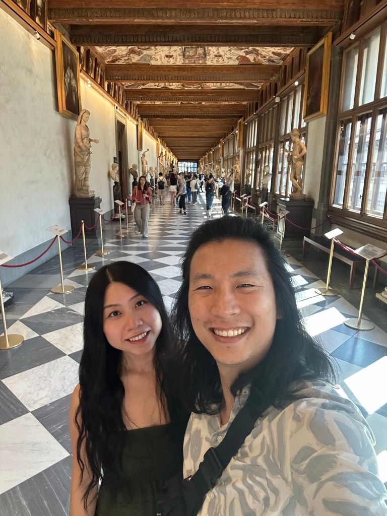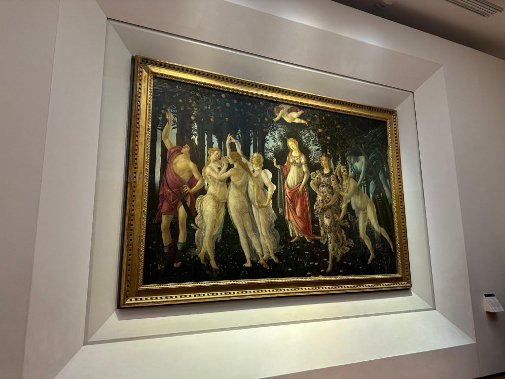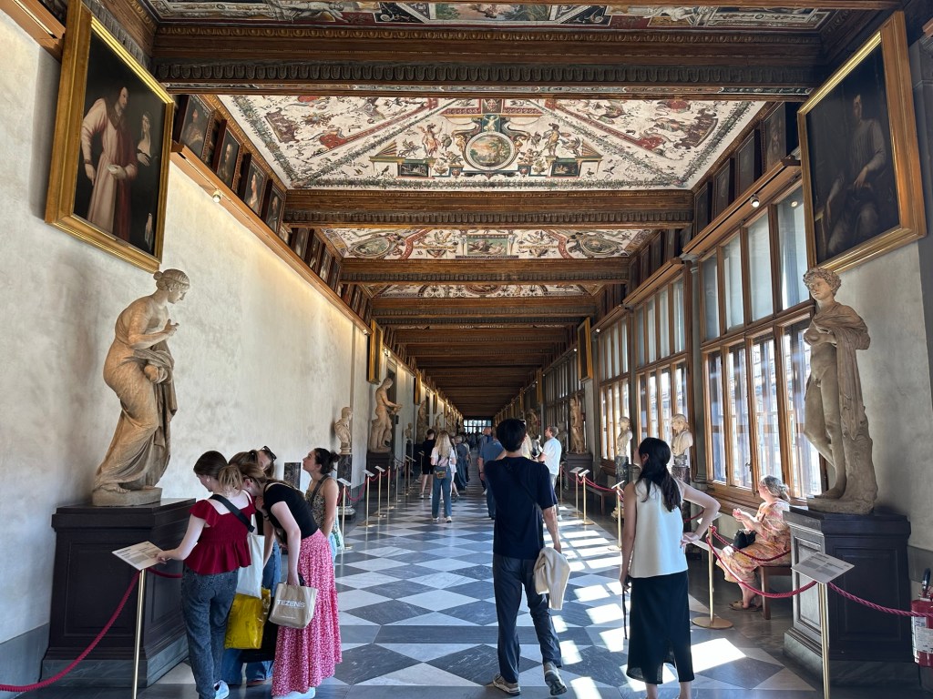 Our first stop in as Florence was the Uffizi Gallery. We saw really spectacular pieces of art in real life including “the Primavera”, “the birth of Venus” and “the Medusa”. There were entire rooms dedicated to showcasing pieces of work from Da Vinci or Botticelli. The amount of walking was killing me again given we had spent all morning travelling (we actually took a flight from Venice to Rome, to transfer to Florence. So it was a long morning of airports). At one point I heard an older gentleman ask his party at the Uffizi “and how many pieces of artwork by women have you seen here today?” To which his group replied “none.” That made me realize women were largely underrepresented in the painting profession at that time. And many weren’t given the luxury of being able to pursue this. A bit of a downer but I’m glad I caught this man asking this question.