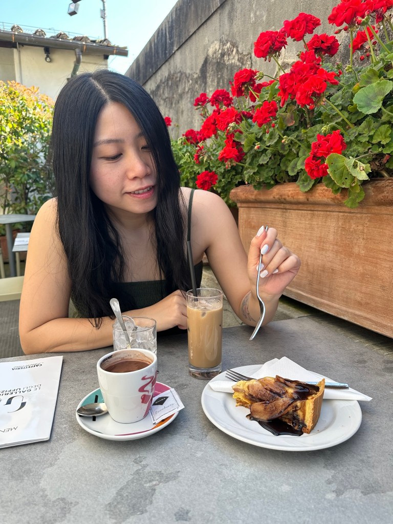 I did have to take a break at the cafeteria at the Uffizi. I got asked if we wanted to sit down or take it to go, and I definitely wanted to sit. Later on, S pointed out there was a price difference of several euros for every menu item if you sit down 💀 Whoops.