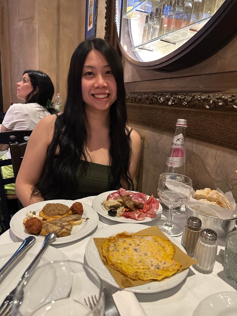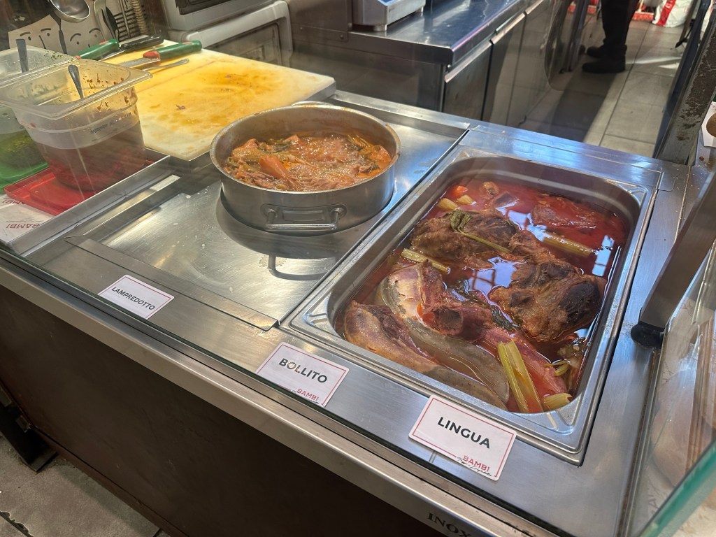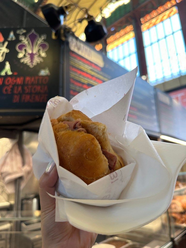 We also went to the food hall at Mercato Centrale. We had dinner reservations but I really wanted to try a lampredotto: a Florentine dish made out of the fourth stomach of cattle. I was never one for eating organs, but I’ve heard about lampredotto prior to our trip. The most famous stall at the market was closed for the day, but we did find another fairly well rated stall that sold it too. In my opinion, while the stomach was well flavoured and tender, it still tasted a bit too much like organ for me. Glad I tried it though!