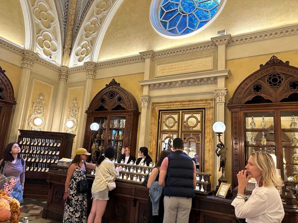 After the market, we walked towards the Officina Profumo Farmaceutica Di Santa Maria Novella. This is known to be the oldest pharmacy in the world and mainly sells perfumes and skincare products. The inside was gorgeous! I had wanted to buy a small bottle of perfume but realized it was more than €200 for their smallest size and I couldn’t bite the bullet. Still a neat place to have visited!