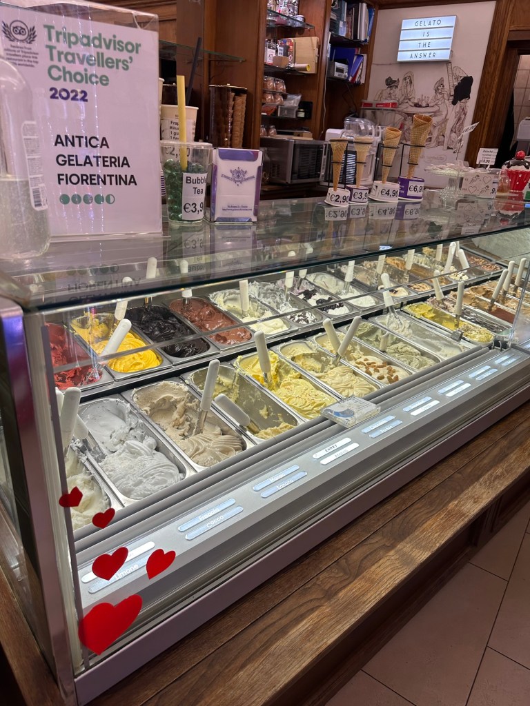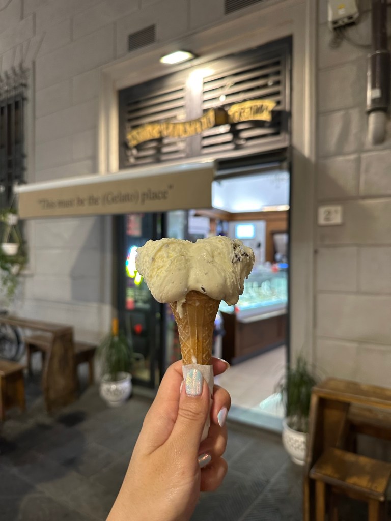 After dinner we stopped by Antica Gelateria Fiorentina and the man who worked there was so nice! We asked him for a recommendation and he did his best. He also let us try a sample first before we committed. And then also gave us samples of the hazelnut gelato. I get why. It was amazing. We would’ve come back for it if we had any time left during our stay in Florence!