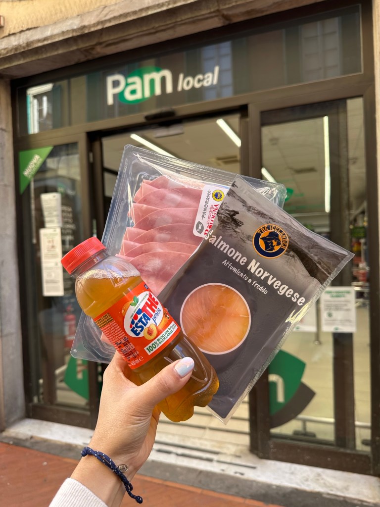 Then we took our luggage across the uneven cobblestone roads to take the tram back to the airport. It was super simple and I’m glad public transport was quite easy to understand in Florence. Oh and also, I had to hit up a pharmacy in Florence because I was getting the worst hay fever. I was fine in Vancouver, but Italy has been making my nose run pretty badly. Glad I caved and got some allergy pills so I can stop sounding like I’ve got the plague during our trip.