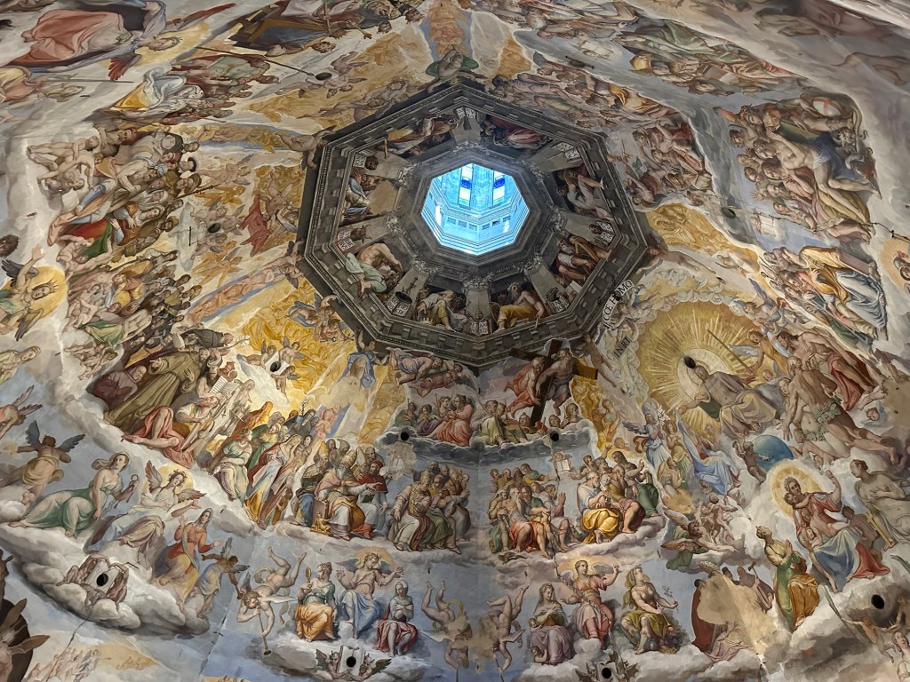 We did it of course, and at one part of the hike, you see the inside dome at a much closer angle than other churchgoers. I have no idea how they managed to make and then maintain the art up there. It’s huge!!