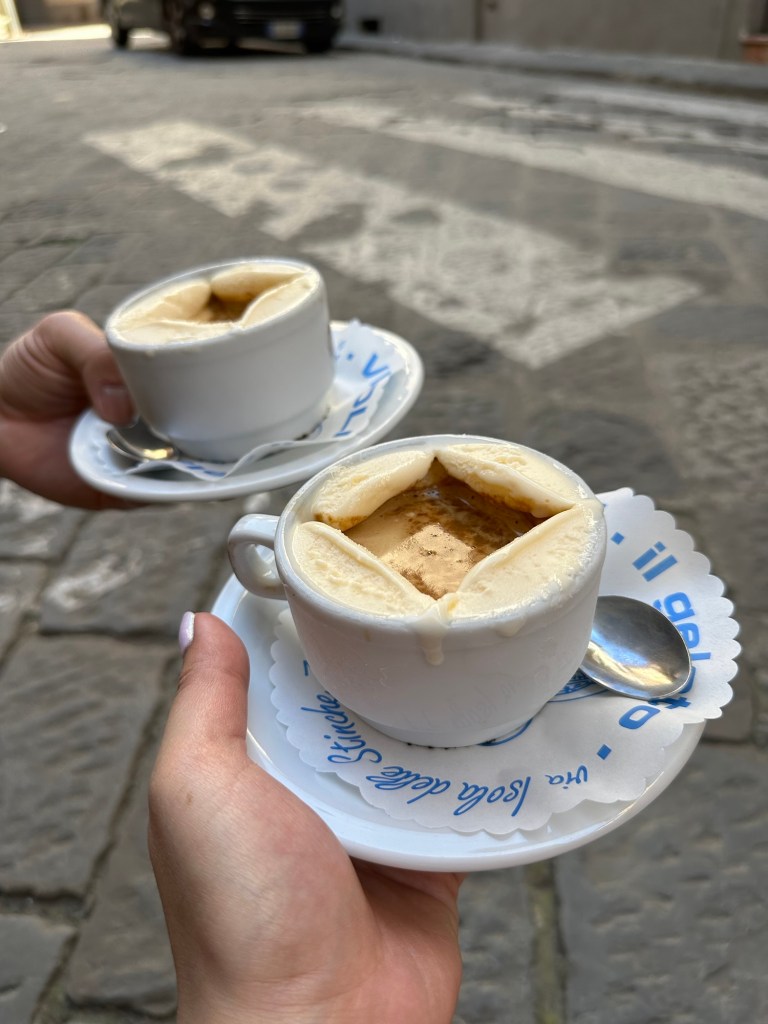 Our tickets for the hike up the Duomo also came with some other things we could access but we opted to skip those since we were pooped. Okay I was pooped. But you know what I could use? A shot of espresso! So we went to Vivoli Gelato for their famous affogato!