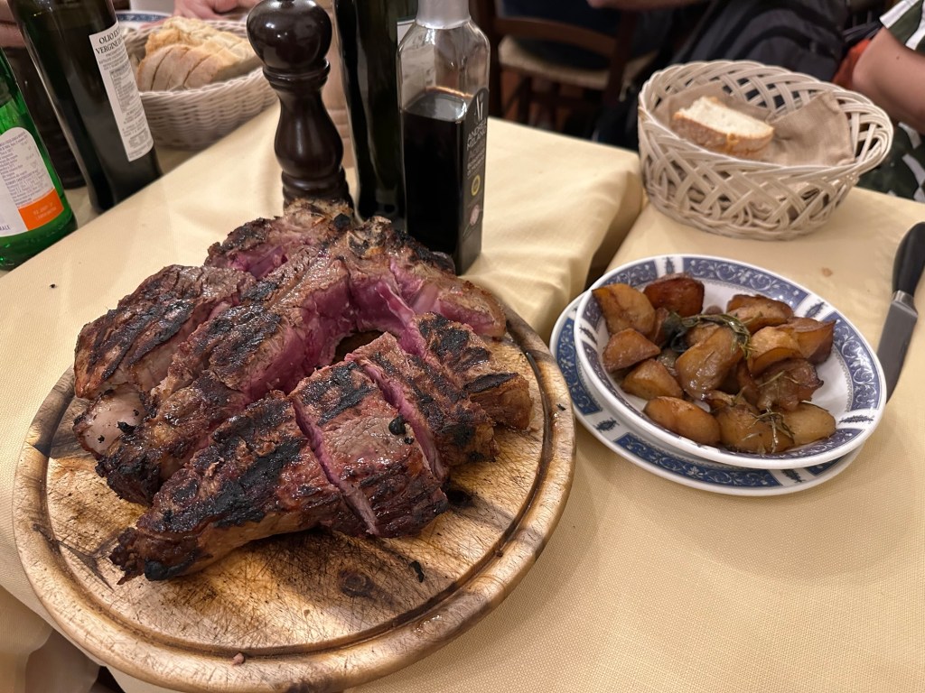 We walked and sat around the city some more as we waited for our dinner reservations. This night we chose a restaurant that served Florentine steak: Antico Fattore.