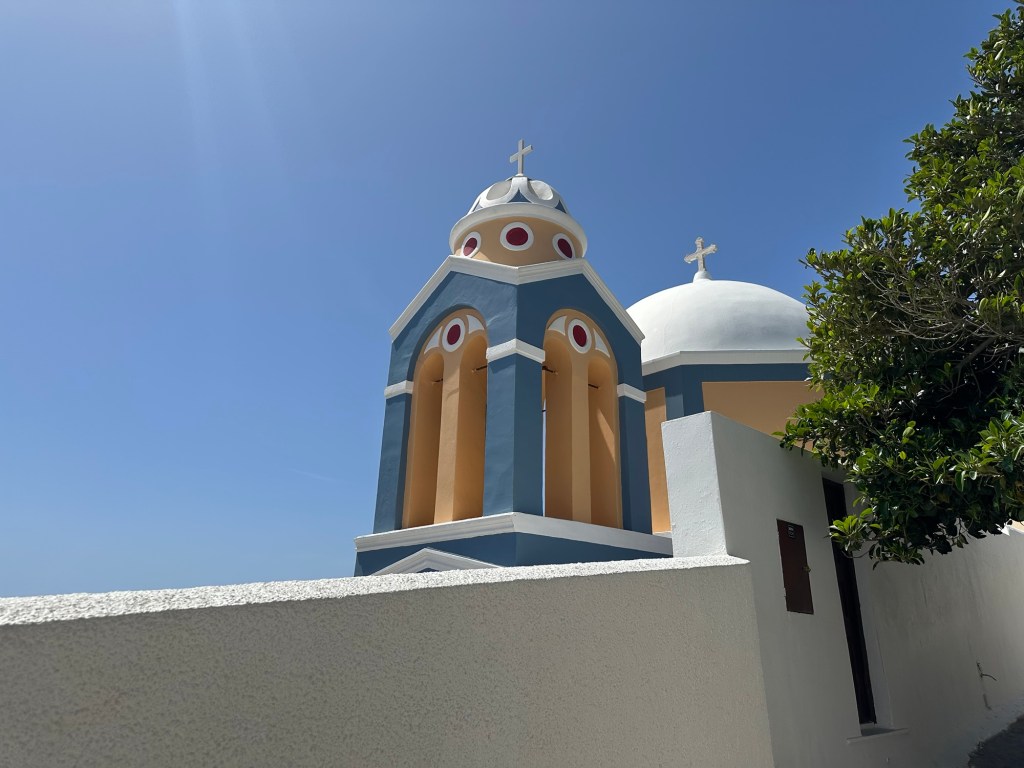 Our hotel was the San Giorgio Villas by the way and it was literally a minute walk to the Fira town square. Of course, Angelo was an amazing part to our stay and if you read the Google reviews, he gets brought up lots. He even talked to the owner the night before since we couldn’t make our first night’s stay and they felt bad. So they pre-emptively gave us 20% off our bill to help us out. The only shortcoming I feel for this hotel was that there isn’t a pool. But the room was nice and very clean, and we got our own little patio. It was also well air conditioned! Which some of our Europe hotels haven’t been.