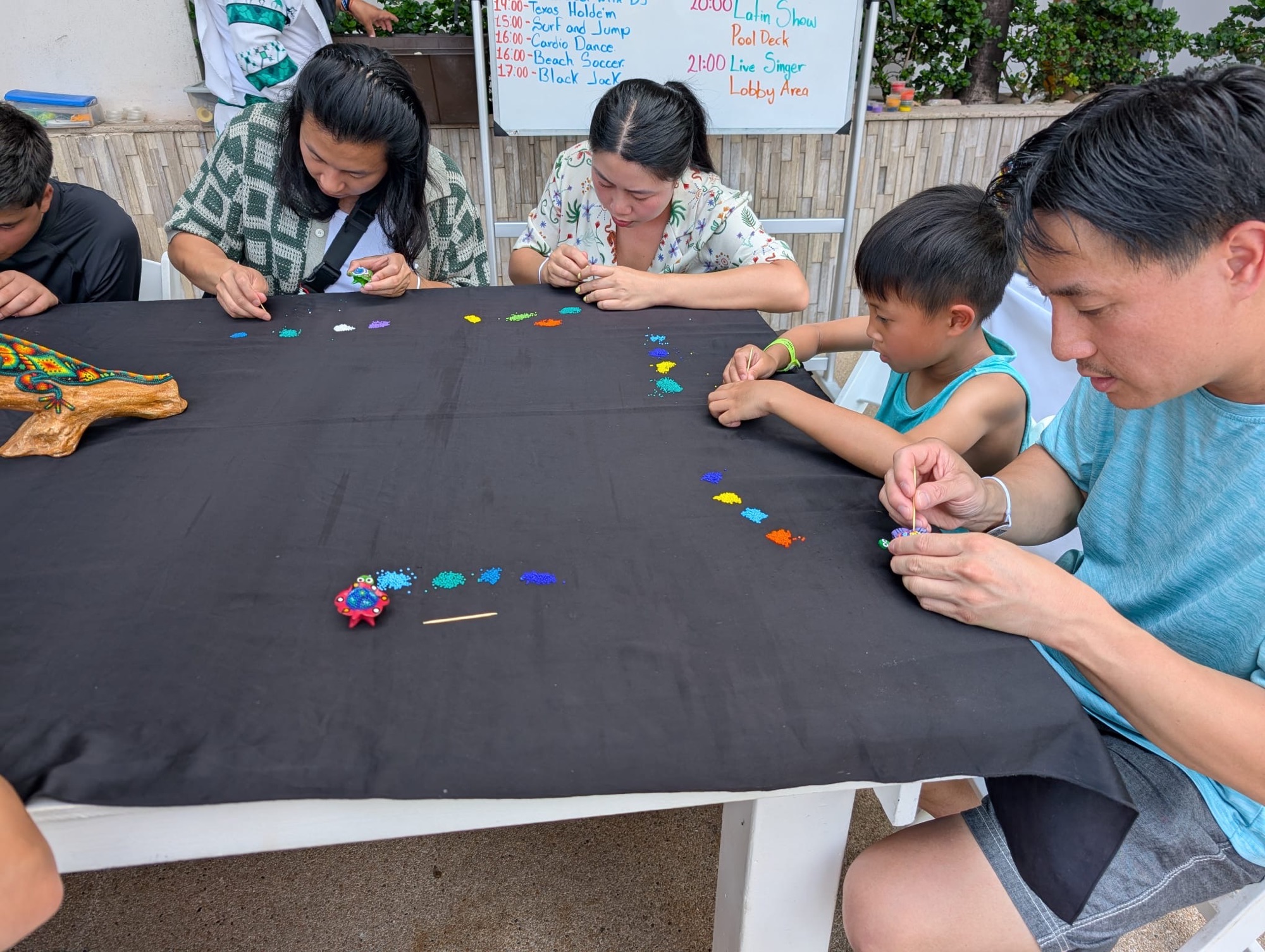 On our last day, we woke up to our last buffet breakfast. I managed to catch one more arts and crafts session, and this time it was keychain making. We made our own little iguanas!