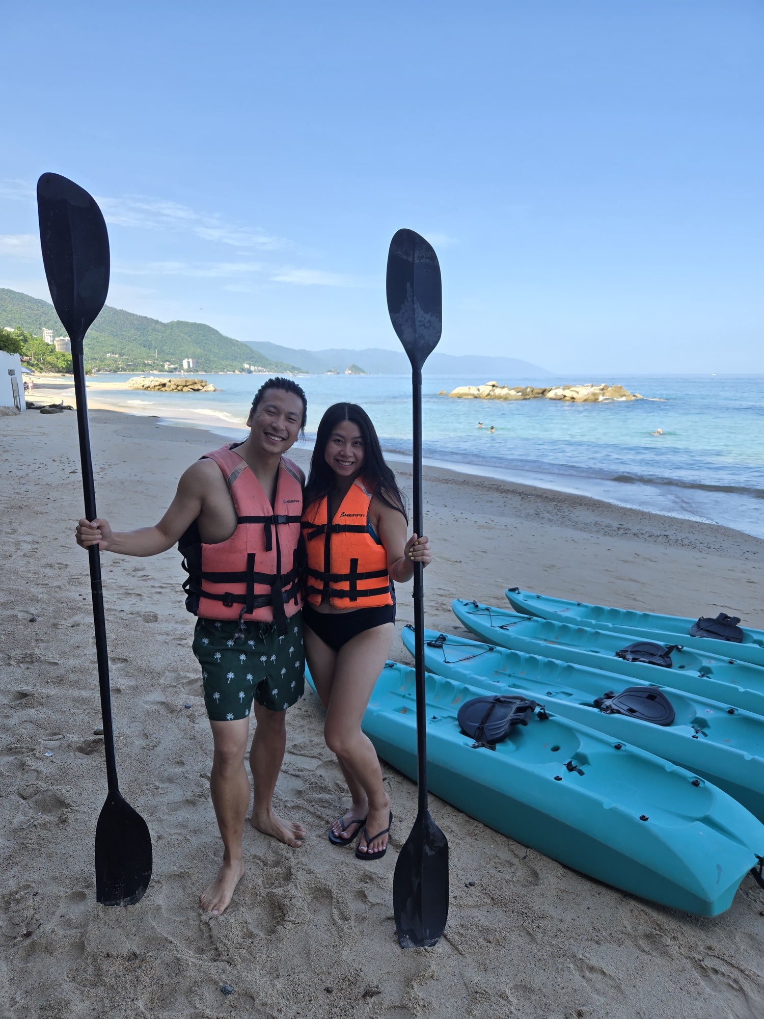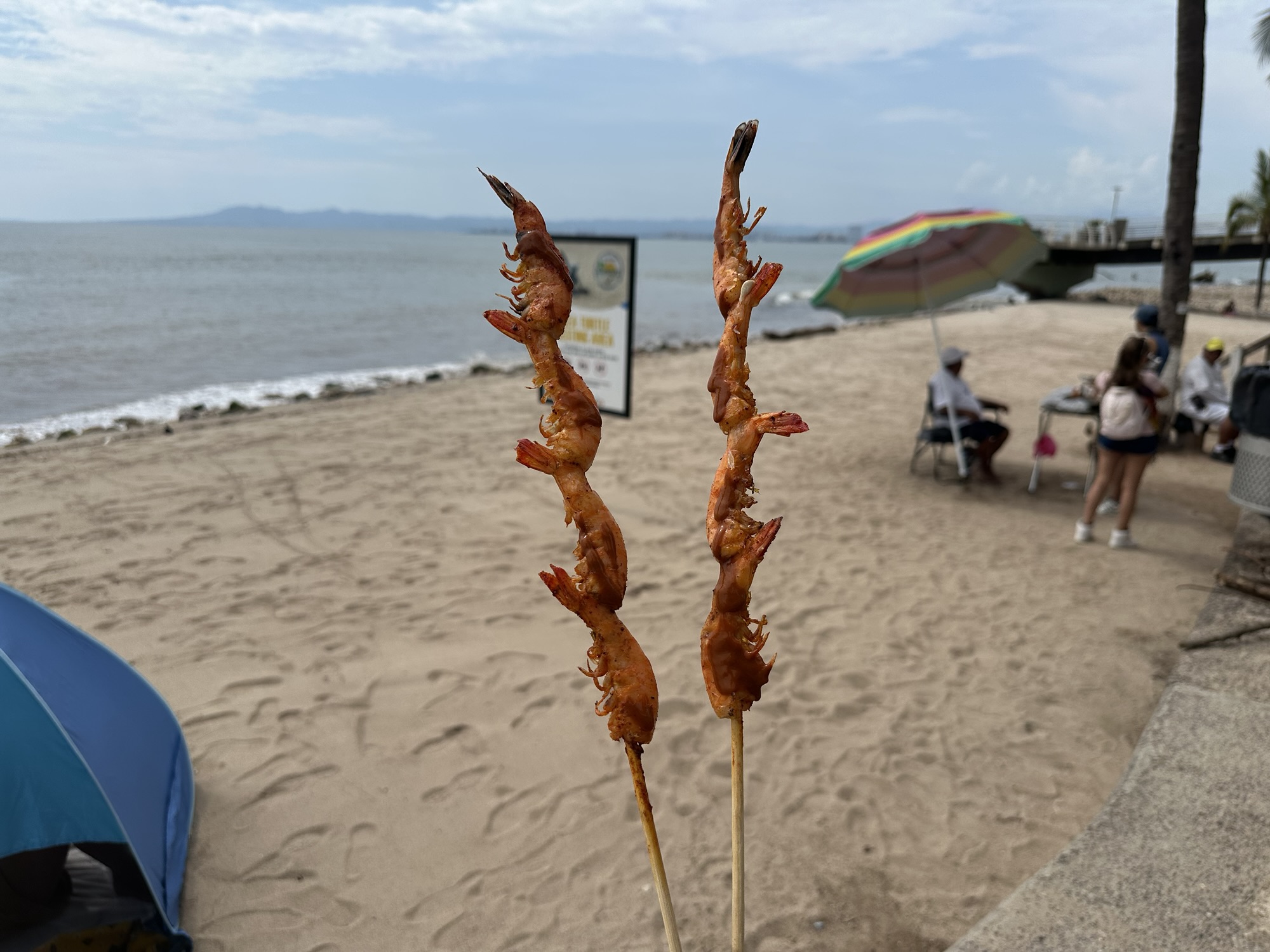 At around 1:15 PM, S and one of my sister-in-laws took an Uber into Zona Romantica for a massage at Elite Spa PV. The spa was great: air conditioned, their staff spoke English (so it was easier to communicate what we wanted), and it had a very clean and relaxing atmosphere. We then walked around the town for a bit and got shrimp on a stick off a beachside vendor! This was S and my favorite snack from PV years ago! We also stopped by a big drugstore to pick up some snacks and soaps, and then we took an Uber back to our hotel to hang out with our family.