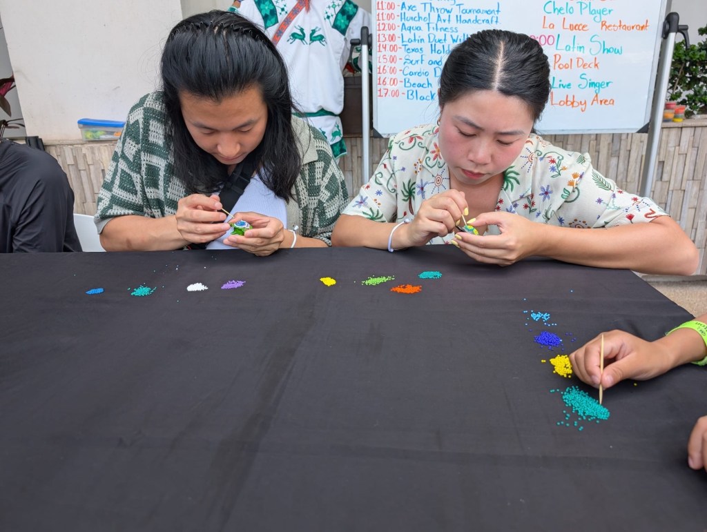 Day four, we ate at the breakfast buffet and then did an activity they were hosting poolside: learning about Huichol bead art! We got to decorate our own wooden turtles. It was fun, and it was a neat thing to bring home. We later had lunch at Cocomar again. My standard order there became two salmon tiraditos and one octopus one. I went with one of my sister-in-laws to the gym. I mainly just walked on the treadmill to get some movement in. I had slept poorly the night prior so I needed a nap after all this.