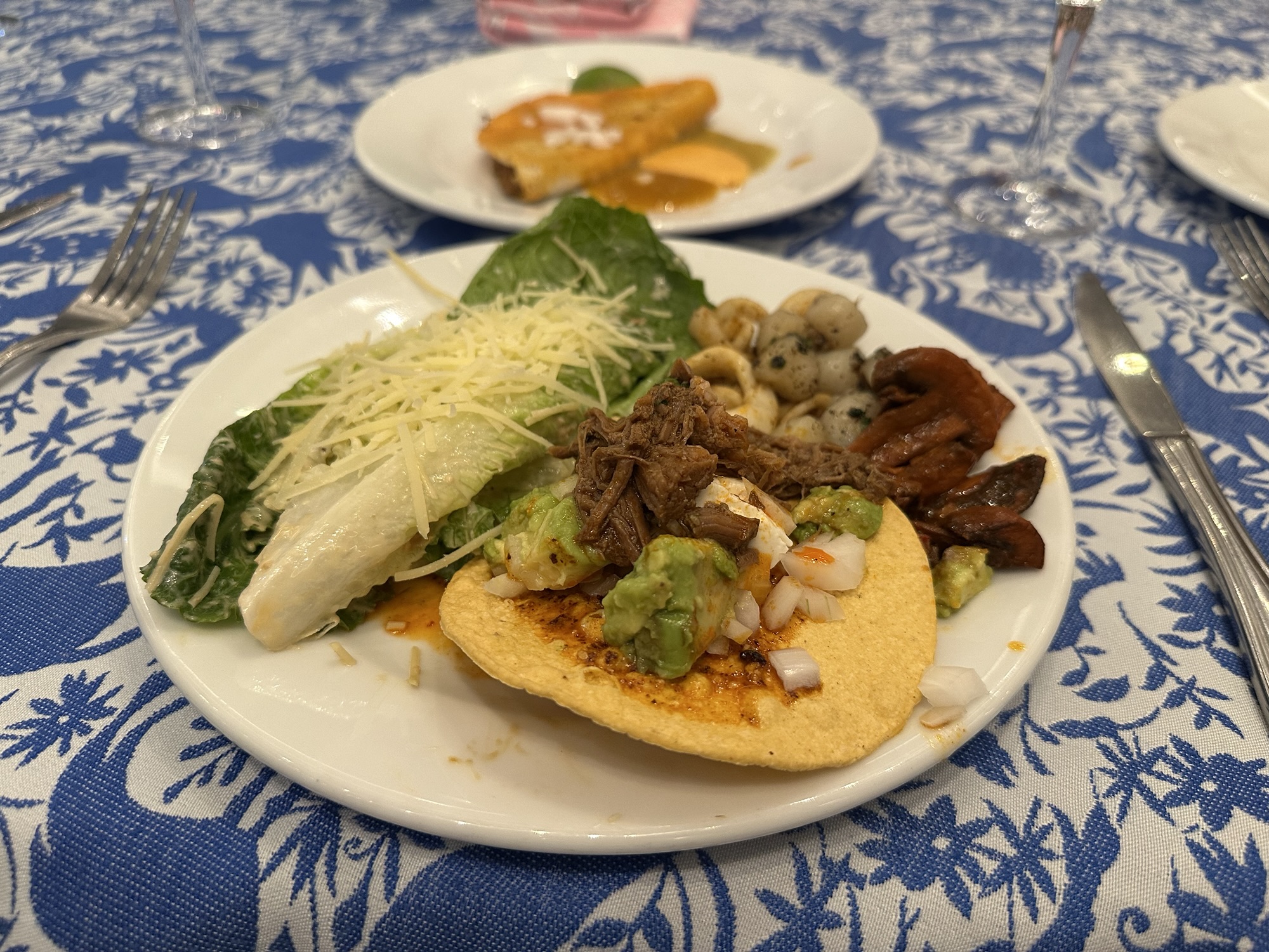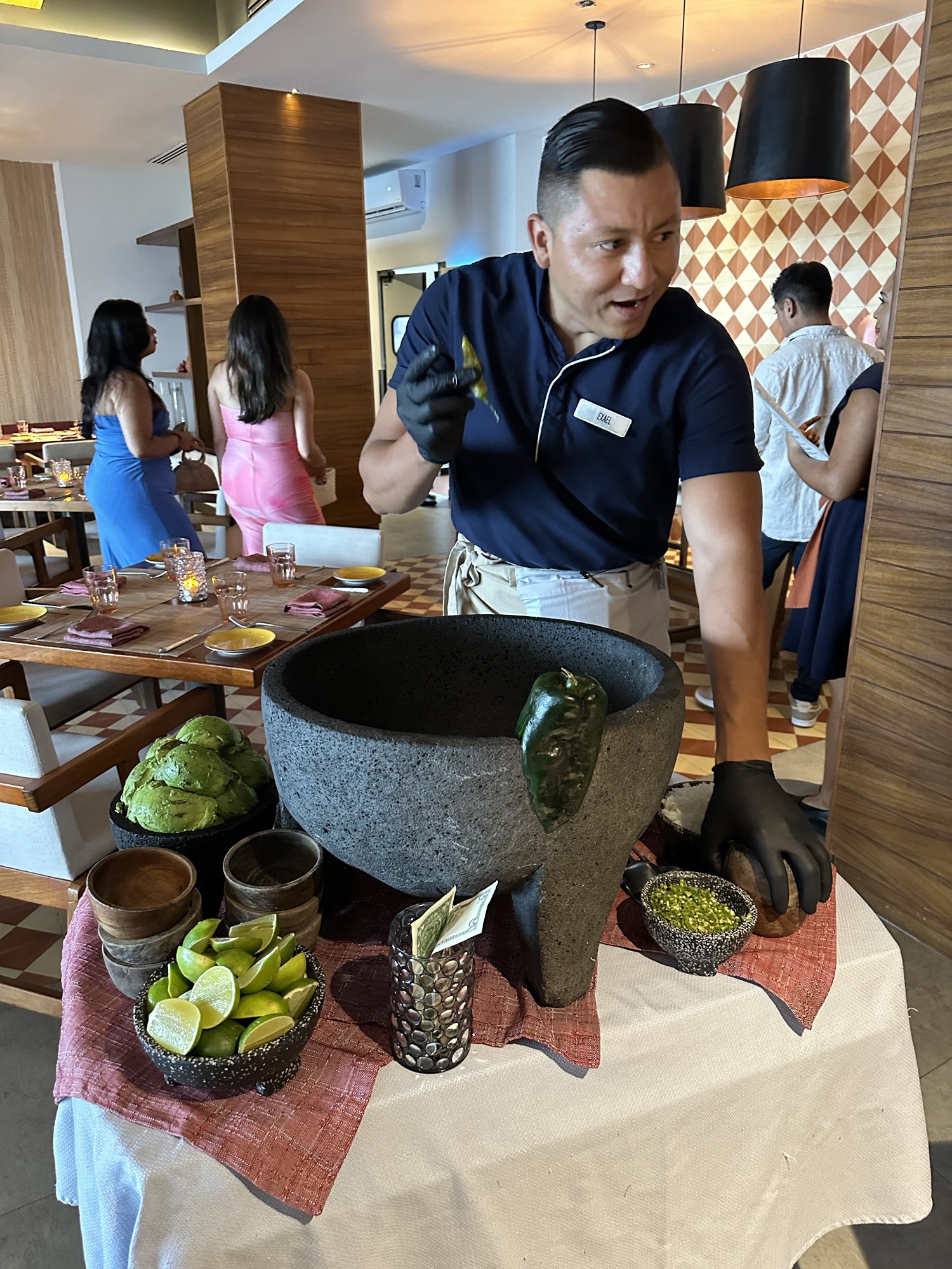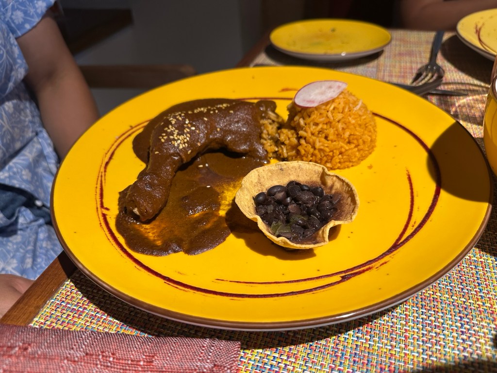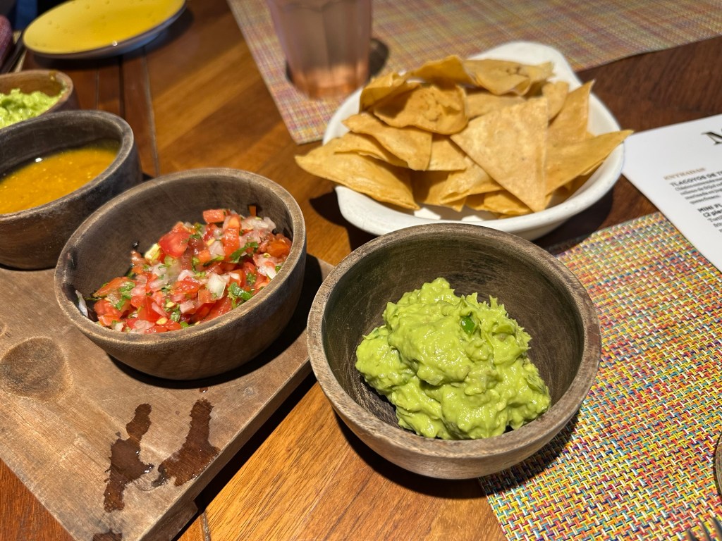 After resting up and all of us doing our own thing for a bit, we reconvened to eat dinner at Maxal, the hotel’s Mexican restaurant. They started us off with tableside, freshly made guacamole. The food was ok. I liked the grilled shrimp and the guac, but you’d think the Mexican restaurant would be the best. However, the mole, tacos, and other dishes really weren’t wowing us. Maybe we’re spoiled with good Mexican food in Vancouver?