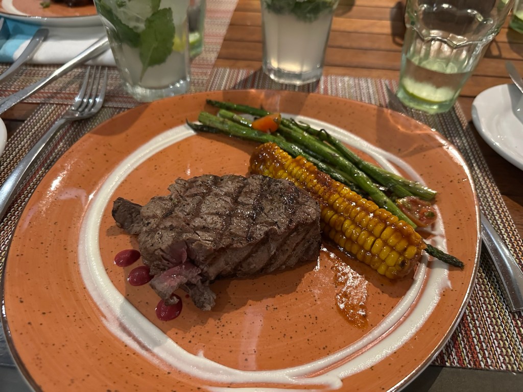 Dinner that night was at Auma, the steakhouse on the resort property. The filet mignon I ordered was really good, and so was the octopus. The major drawback was that this restaurant didn’t have air conditioning, so it was quite stifling to eat a bunch of meat while battling the heat.