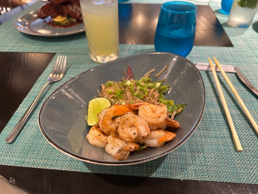 Later at night, we went to Sunan, our resort’s Asian restaurant. There was a wide mix of Asian cuisines here, ranging from Japanese, to Thai, to Korean, to Malaysian. There were hits and misses, and again, I think a lot of their sauces were too salty. But the pad thai I got was very good! It was actually one of my favorite dishes I had at the resort. After dinner, we had a quick hangout with everyone at the family lounge, and then it was time to call it a night.