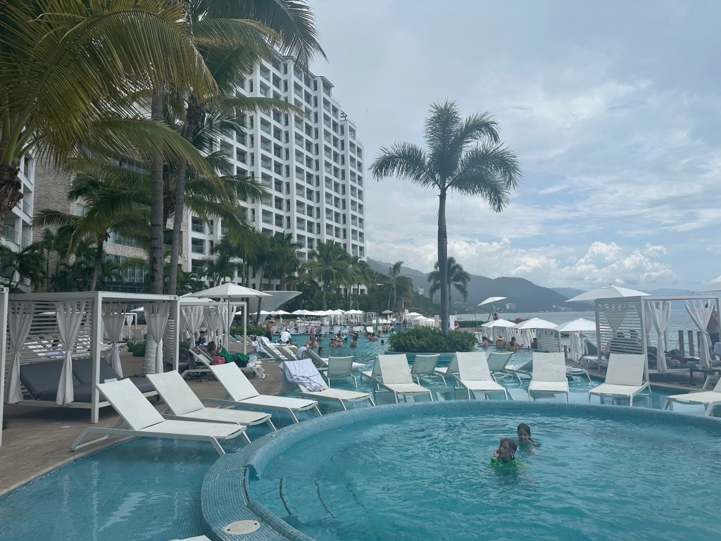This time, we came for a family vacation! S’s family was looking for a destination that would allow us to get there via direct flight in 5 hours or less. We also wanted to find an all-inclusive resort that could accommodate both older folks with limited mobility and younger kids in our party. In the end, we chose to stay at the Hilton Vallarta Riviera!