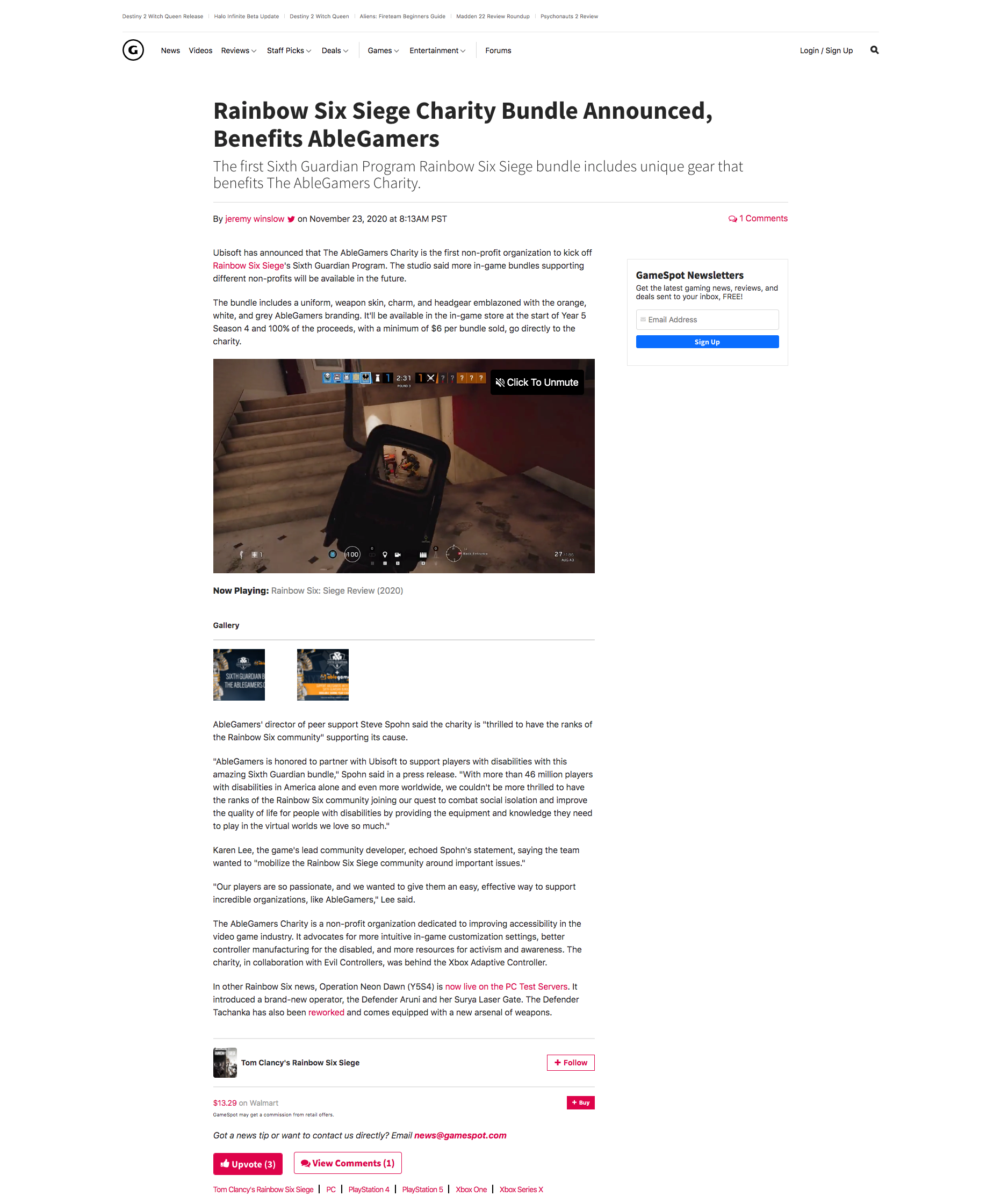 Article – As the founder and creator of the Sixth Guardian charity bundles in Rainbow Six Siege, the initiative’s launch was covered by various press outlets at launch. The first bundle raised more than $170,000 for charity.