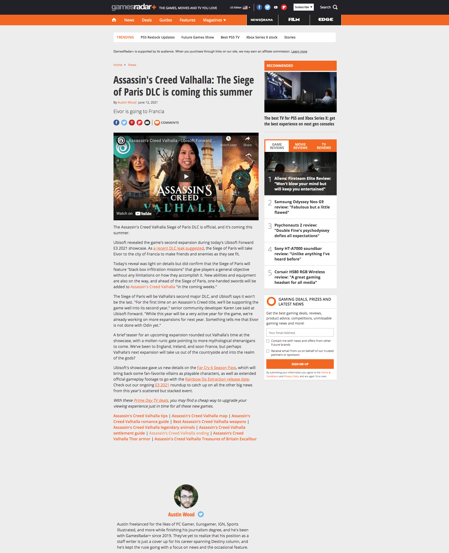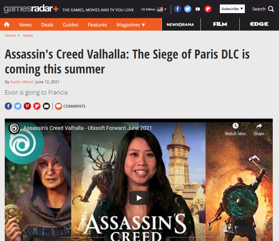 Article – Coverage on the Siege of Paris expansion for Assassin’s Creed Valhalla announcement that I did at Ubisoft Forward for E3 2021.