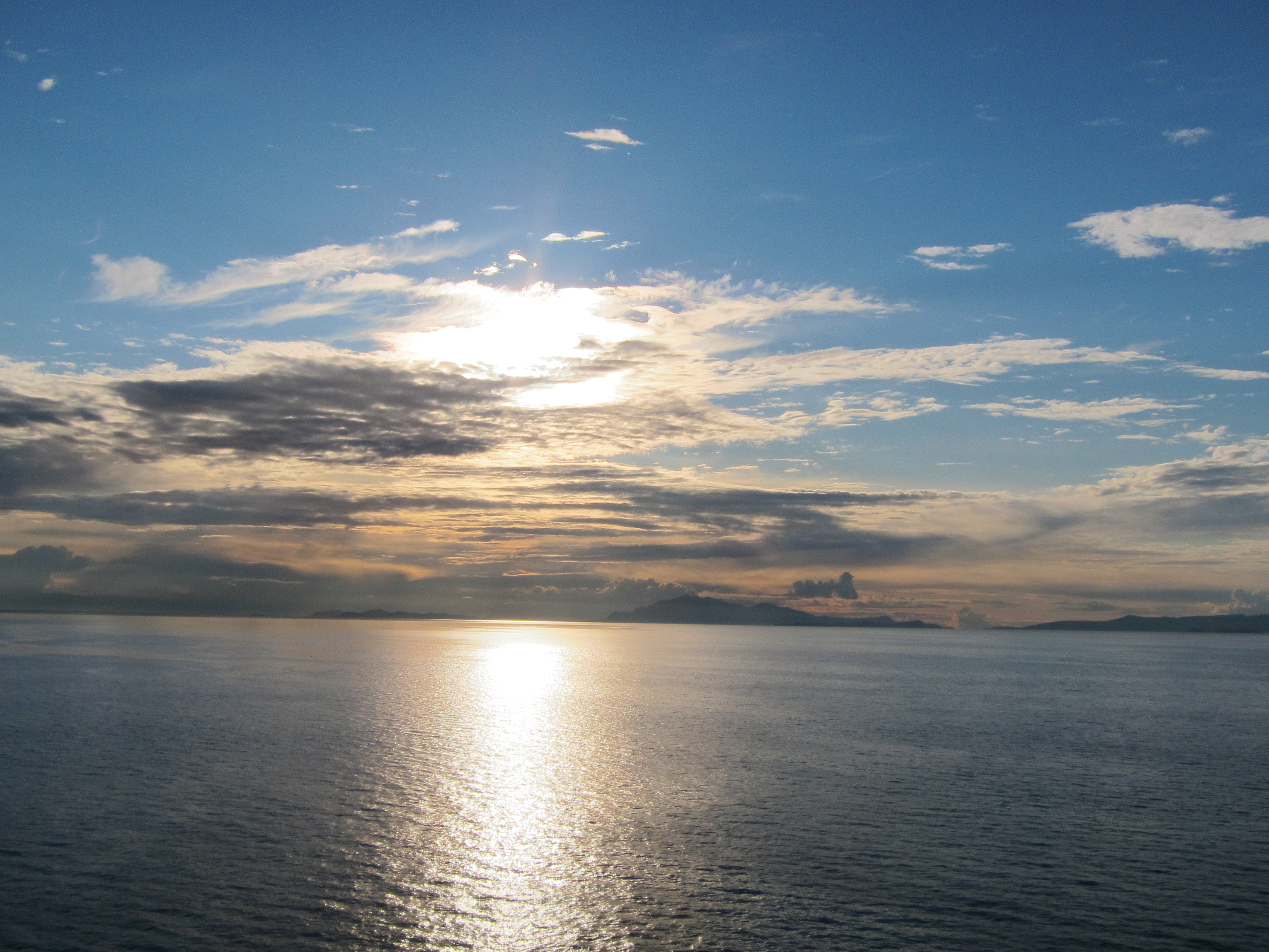 -go out on the deck. Enjoy the view. When else can you catch a glimpse of nothing but sea, stretching out to as far as the eye can see! It is as if nothing else exists and it is just you and the body of water you are on. The sunsets are also amazing. It is undisturbed and unobstructed by buildings one usually finds in the city.
