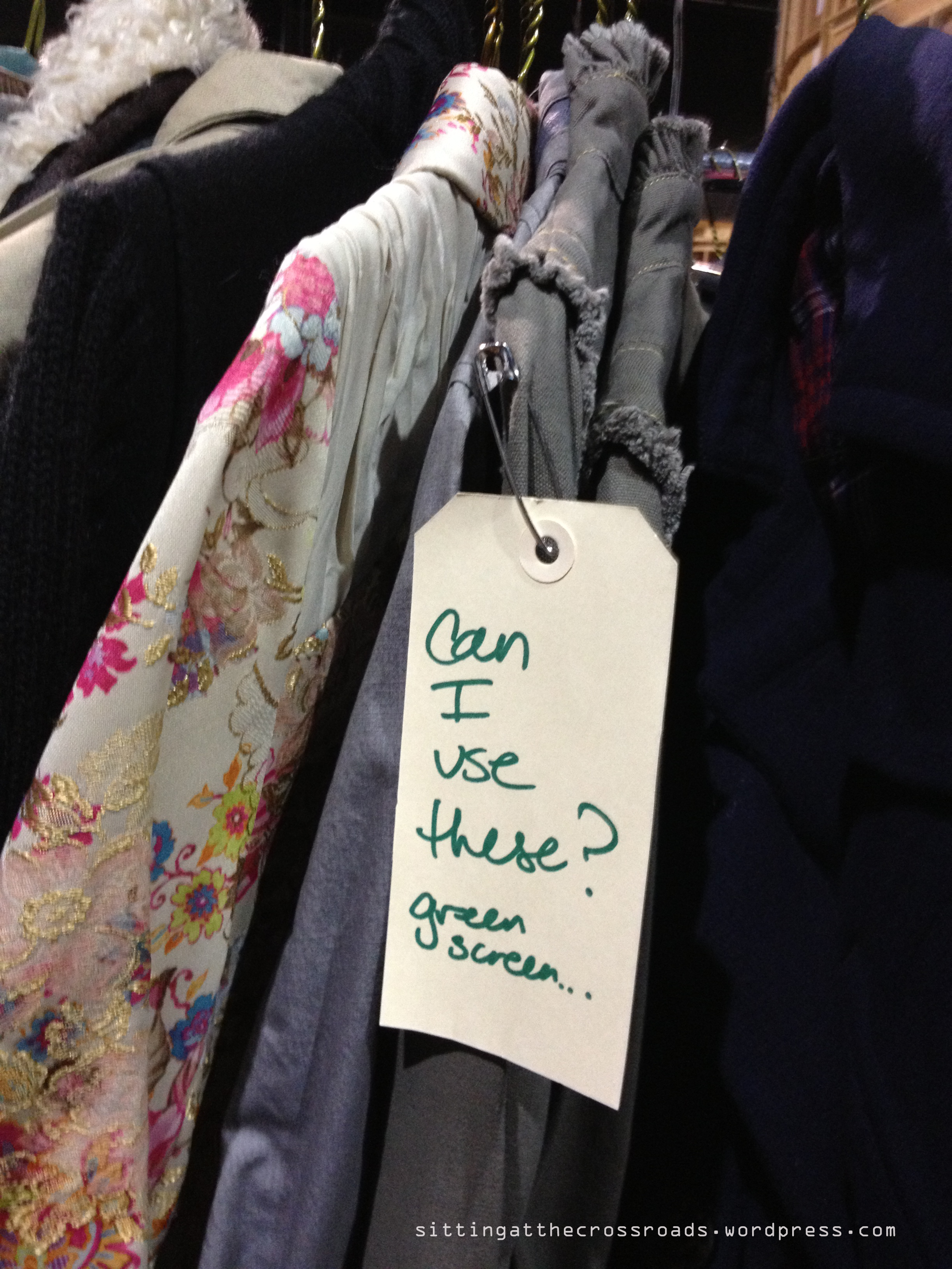 So if there is a wardrobe sale near you, I suggest you check them out! The show’s costume department probably has to get rid of clothes they had in storage, so you may find some awesome deals. My mom and I spent around $100, but got two huge garbage bags full of clothes and other assorted goods.