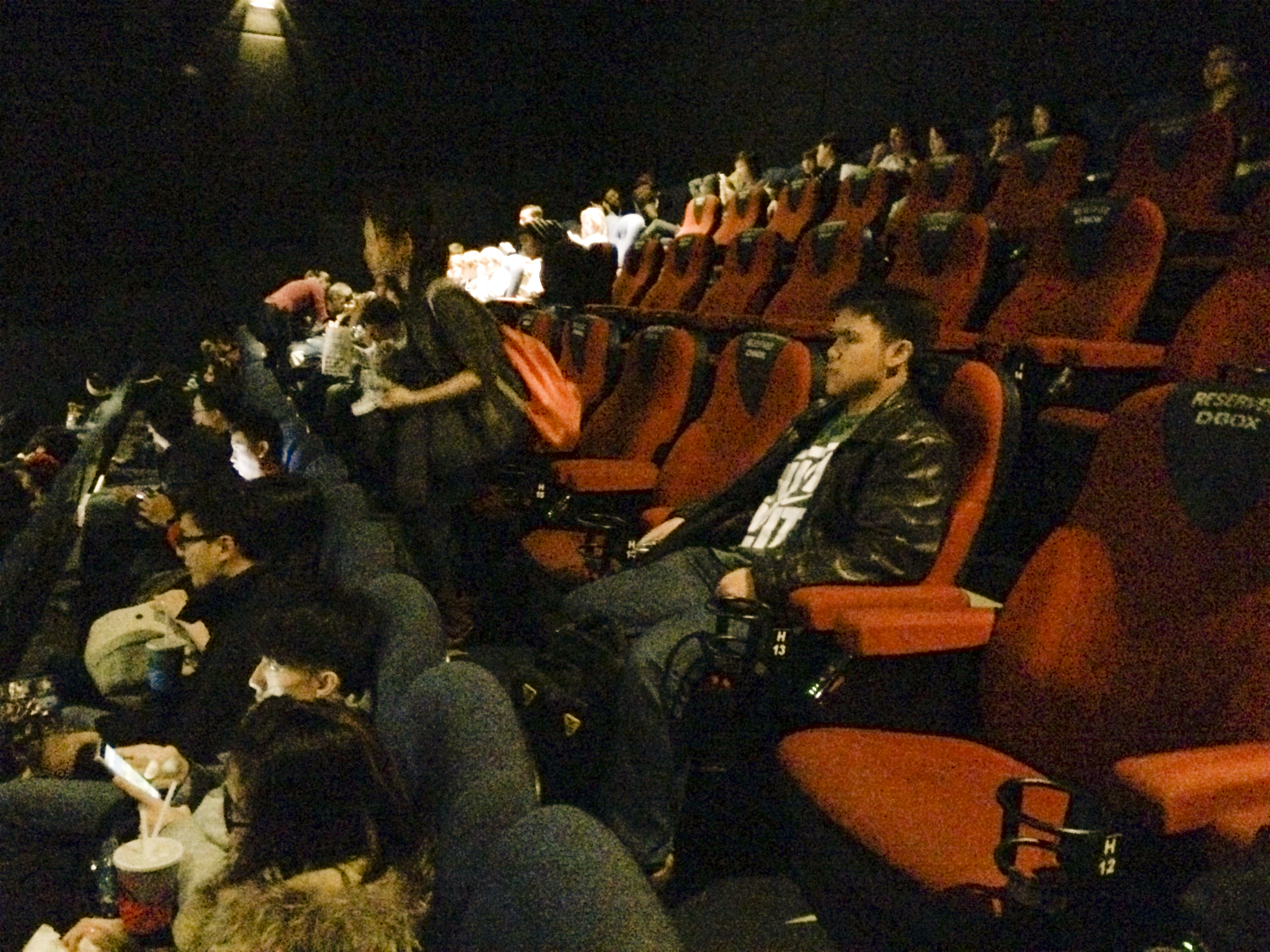 I thought that it was a cool experience. It’s definitely differed from traditional methods of viewing movies, and it does add to the movie. You also don’t need to sacrifice the 3D (if that’s your thing– I like 3D only if it’s made well and the film was actually developed with 3D in mind). Having reserved seating meant that you did not have grab a seat early, and the seats were nice and comfortable since they were bigger.