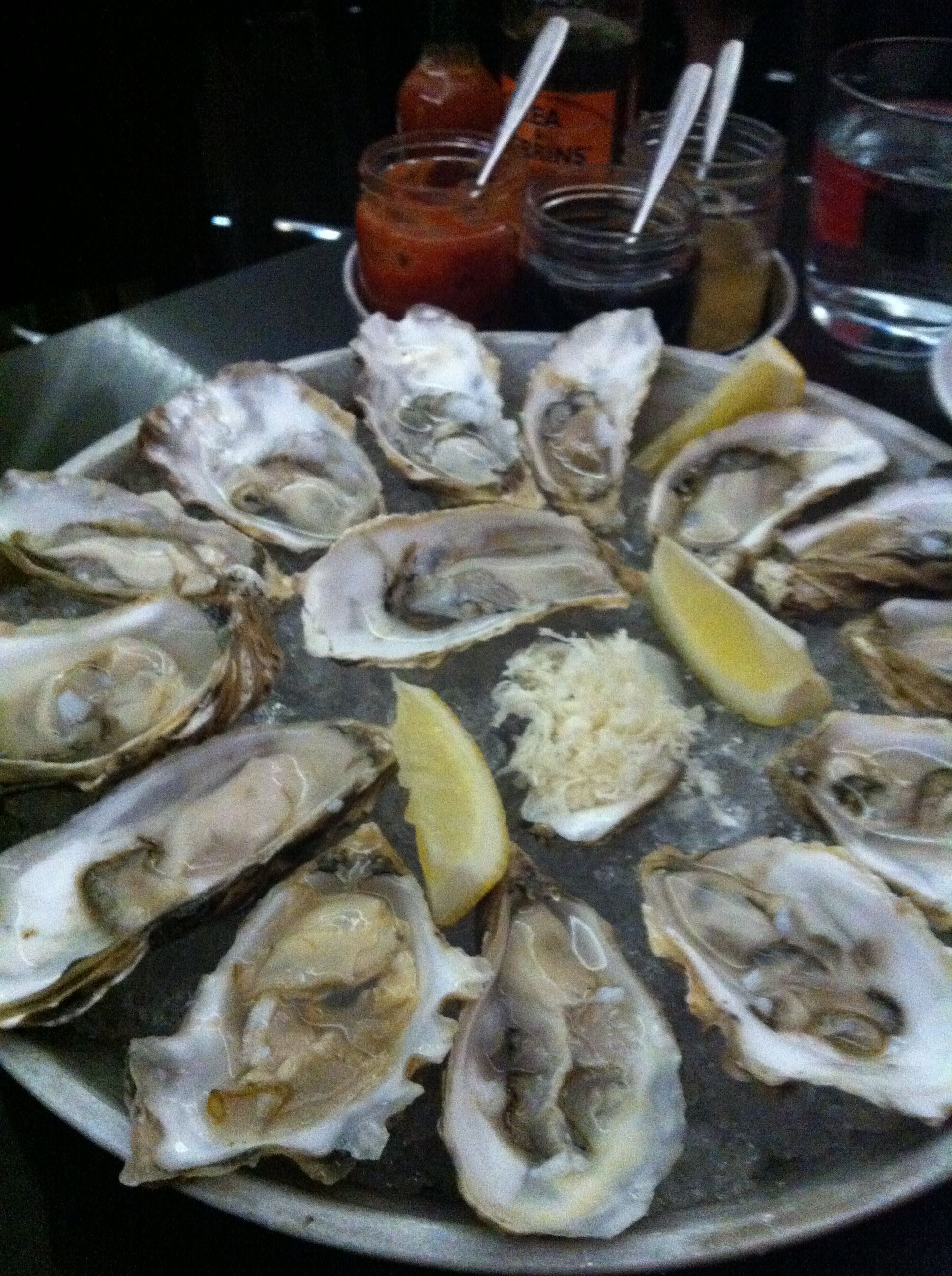 What attracted us was their Buck a Shuck deal. We would be able to satisfy our cravings without destroying our wallets! Again, we are poor university students. ย We ended up ordering loads of oysters, flagging down the waitress whenever she walked by. They gave us a small tray of condiments and toppings for us to customize our own oysters, and with that we shovelled them down our stomachs. The oysters were a little small, but we both agreed that it was a place we would return to. What you will have to watch out for is the fact that it is a small, yet semi-popular joint. Their small staff can only shuck so many oysters at once. My friend and I would have to wait around 20 minutes for them to serve us our orders. Keep this in mind before you go and as you are ordering.